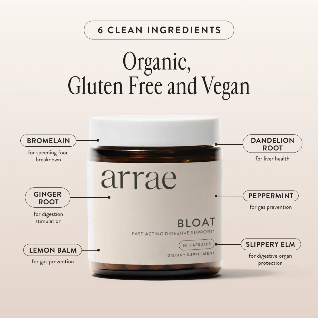 How To Use: Take 2 Arrae Bloat capsules whenever you’re feeling bloated. Whether it’s after a large meal, before a flight, or after a workout, Arrae Bloat is designed to provide fast-acting, natural digestive relief.