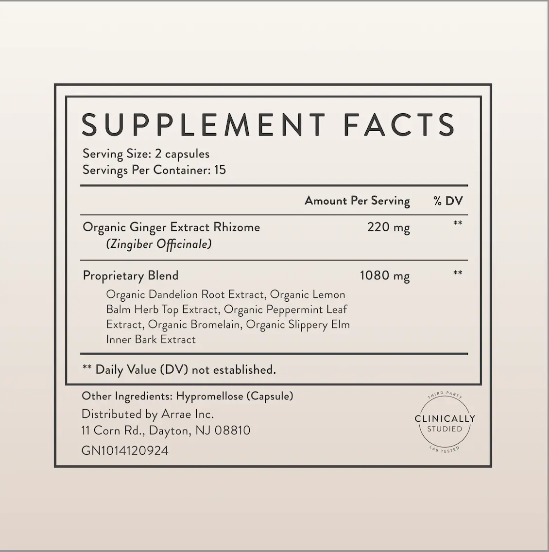 Clinically-Studied, Natural Ingredients: Arrae Bloat contains 5 natural herbs and a pineapple-derived digestive enzyme: bromelain, ginger root, dandelion root, lemon balm, peppermint, and slippery elm. This clean, no-filler formula is for men and women looking to optimize their gut health.