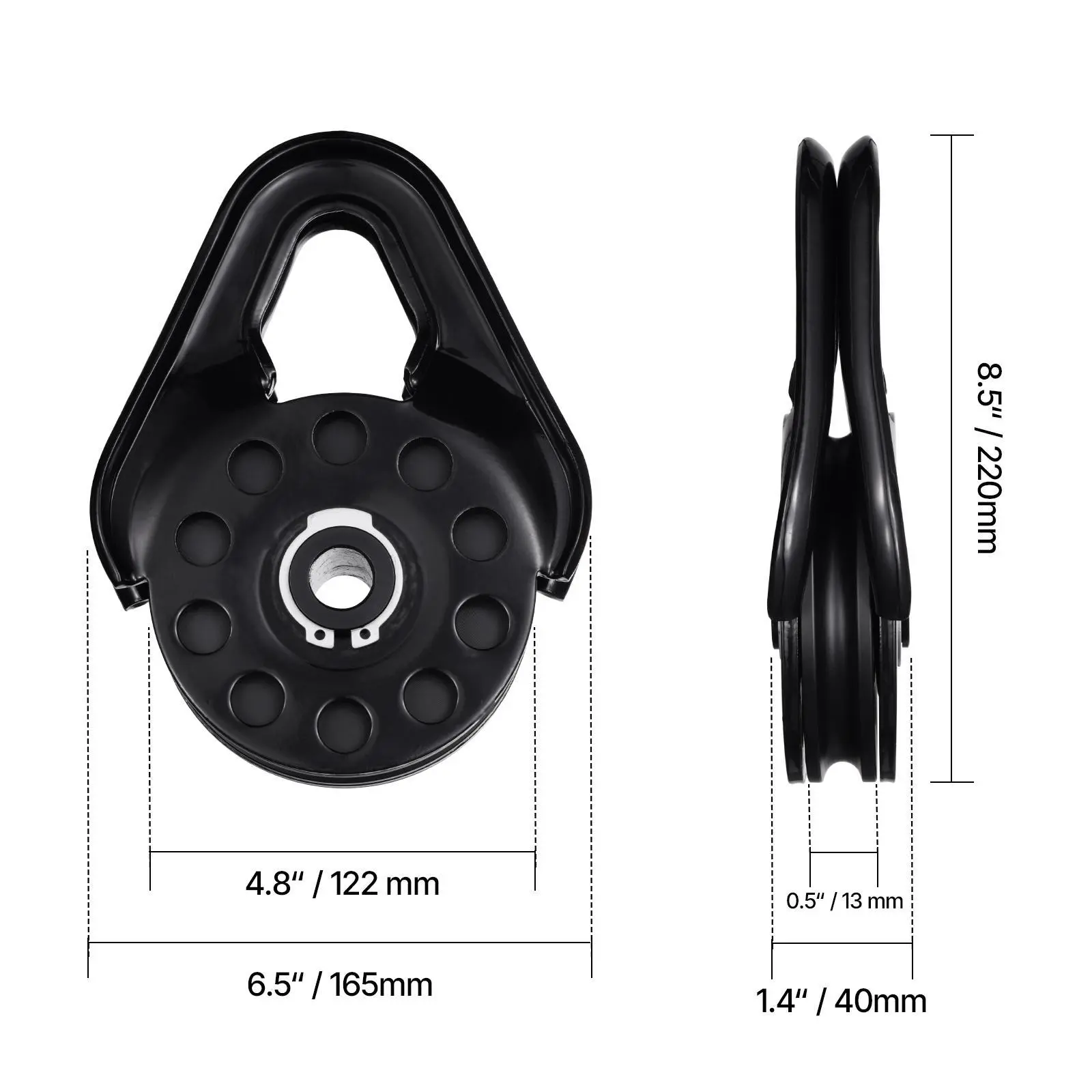 • Upgraded Hook Design: The groove in the middle of the snatch block pulley helps the rope stay in place, reducing the risk of slipping out or becoming unevenly loaded. This provides smoother, more secure lifting and pulling. It is compatible with 3/8-inch ropes and fits most standard rope sizes.