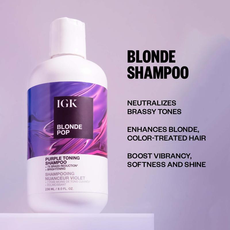 5. IGK CHANGE YOUR TONE | BLONDE 3-STEP SYSTEM BUNDLE | Blonde Pop Shampoo + Blonde Pop Conditioner + L.A. Blonde Purple Toning Treatment Spray | 679ml | 23 oz