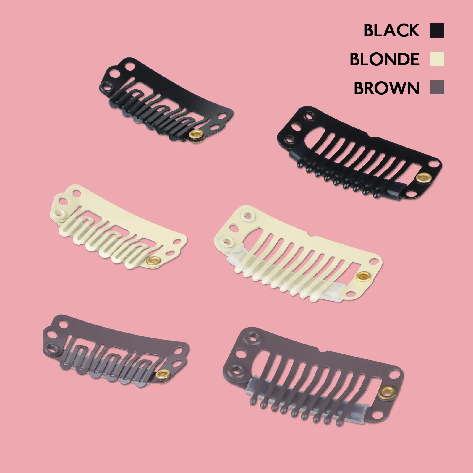WENNALIFE 4 PCs Replacement Clips for Clip in Hair Extensions Blonde Brown Black Sturdy Clips
