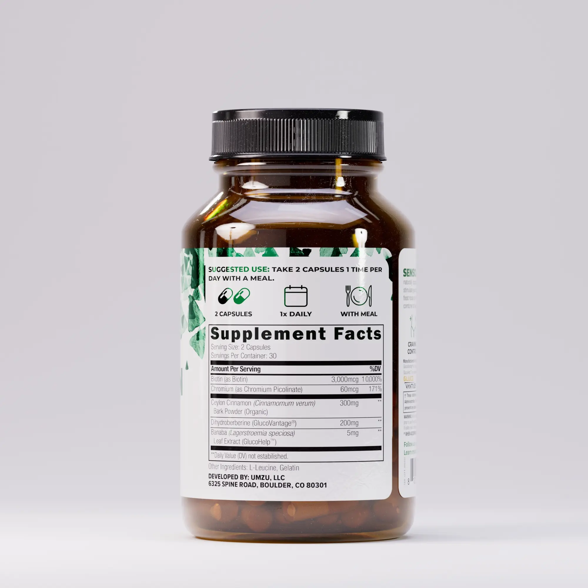 UMZU Sensolin is a scientifically formulated supplement designed to support metabolic health, healthy cravings, and overall wellness. Featuring Berberine (GlucoVantage), Ceylon Cinnamon, Chromium, and Banaba Leaf, Sensolin helps support how your body processes nutrients as part of a balanced lifestyle.