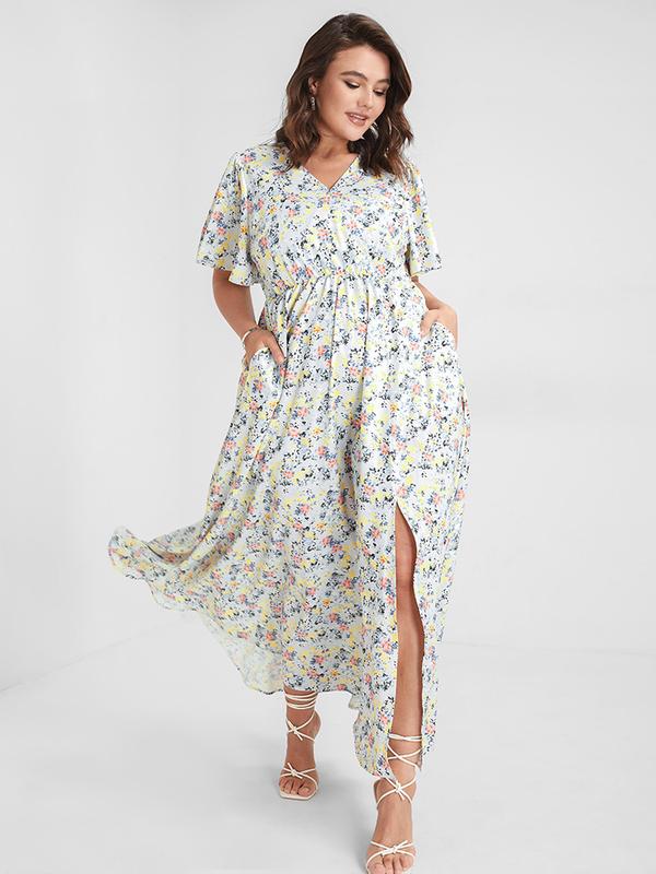 ·Dress Length: Long DressThe dress offers a comfortable fit without stretch. It's ideal for women seeking a versatile piece for their summer outfits. The half ruffle sleeve adds a touch of elegance.