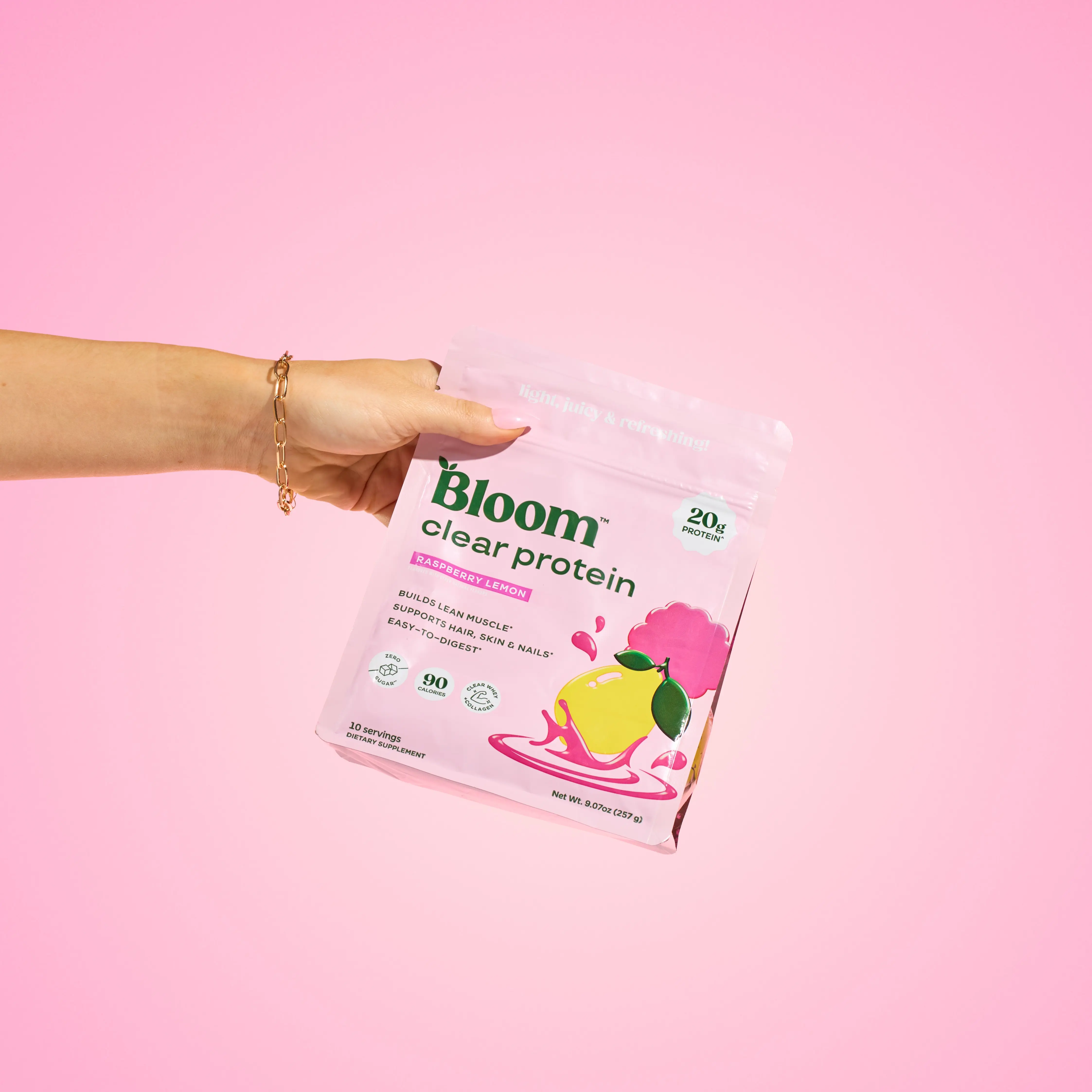 Clear Whey Protein Powder - Designed For Women Clear Whey Protein is a light, refreshing alternative to traditional creamy protein powders. Bloom Nutrition’s Clear Whey Protein is made with whey protein isolate and designed to mix into a clear, juice-like drink that fits easily into everyday routines.