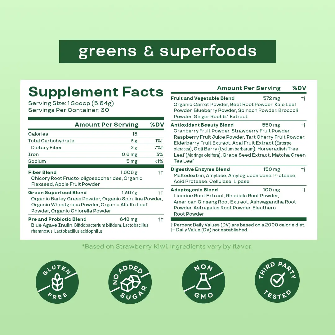 ·Daily Greens Routine: Greens taste amazing, making it easy to stay consistent and feel your best. Add it to a smoothie, mix it into juice or water, or put it in your favorite recipes for an instant upgrade to your daily wellness routine.