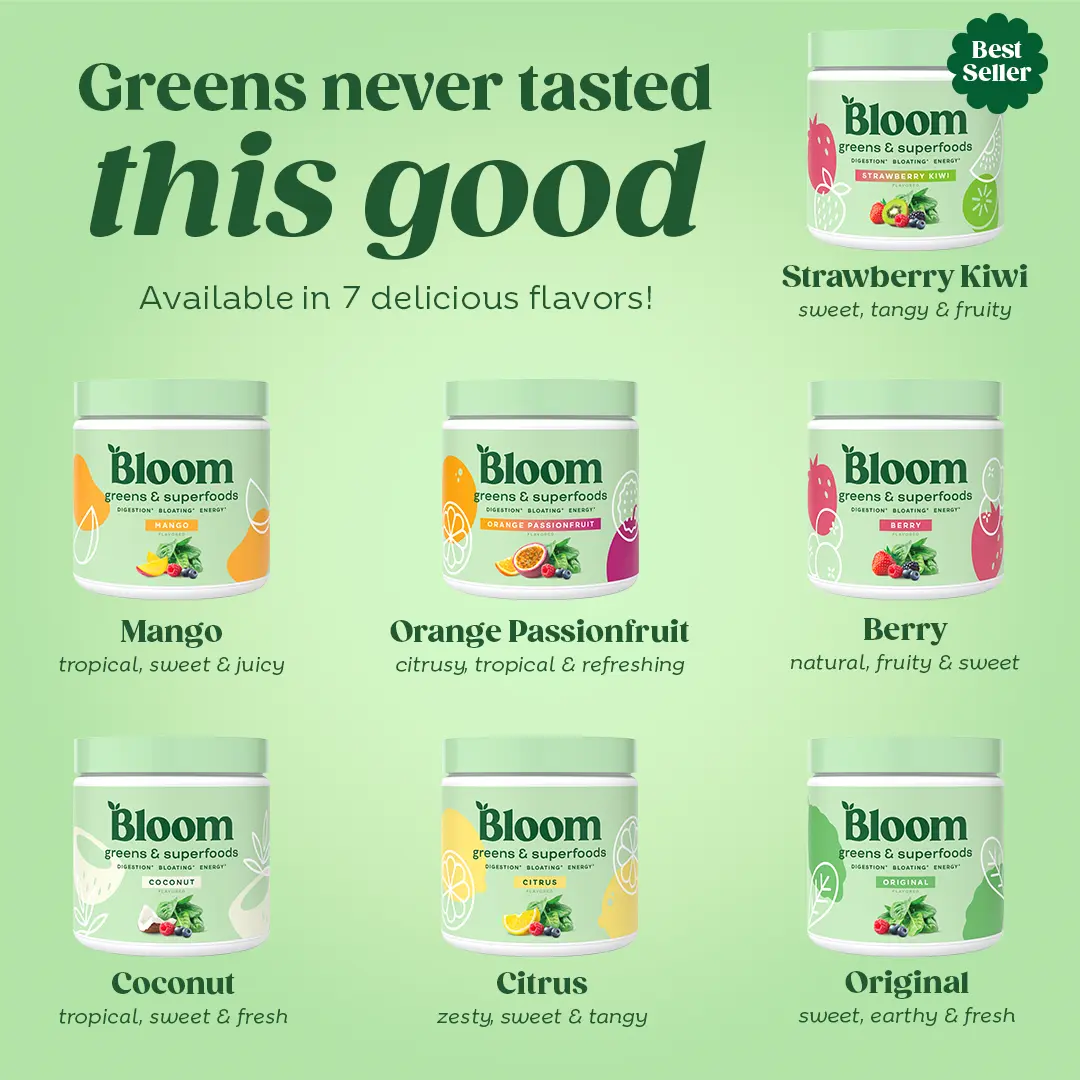 Discover the delicious daily scoop of greens with Bloom Nutrition Greens & Superfoods Powder, a perfect blend of 30+ ingredients designed to support your health and taste.