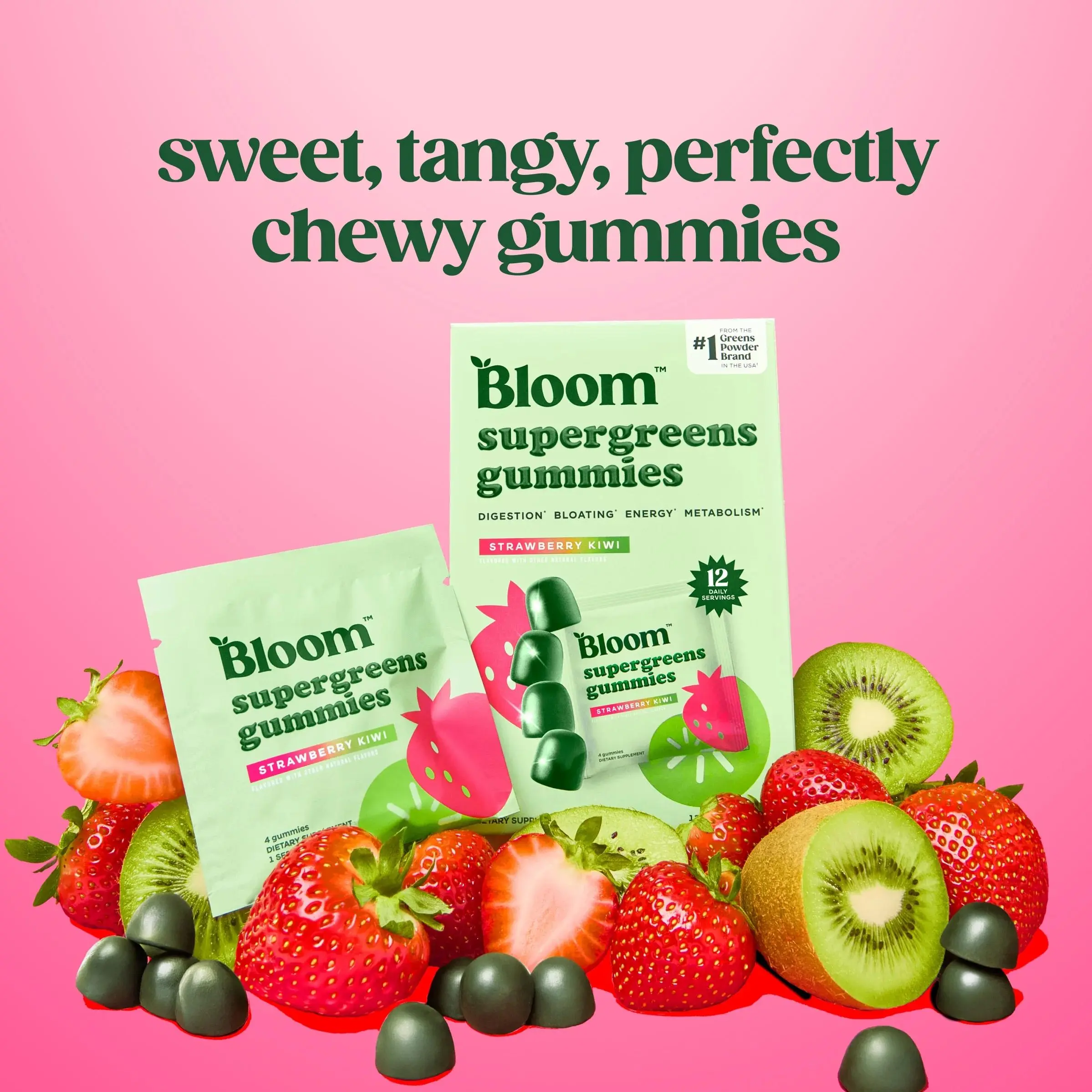 Meet Bloom Supergreens Gummies — the easiest way to get your daily dose of gut health and energy support. Each gummy packs the power of 30+ good-for-you ingredients, including prebiotics, probiotics, antioxidants, adaptogens, digestive enzymes, and nutrient-rich fruits and veggies like organic spirulina and chlorella.