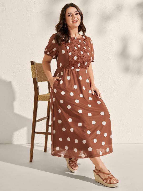 BLOOMCHIC Polka Dots Shirred Bust Ease Midi Dress