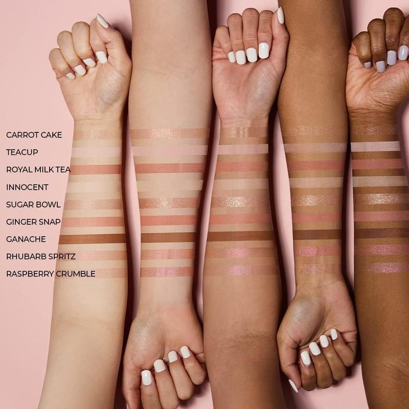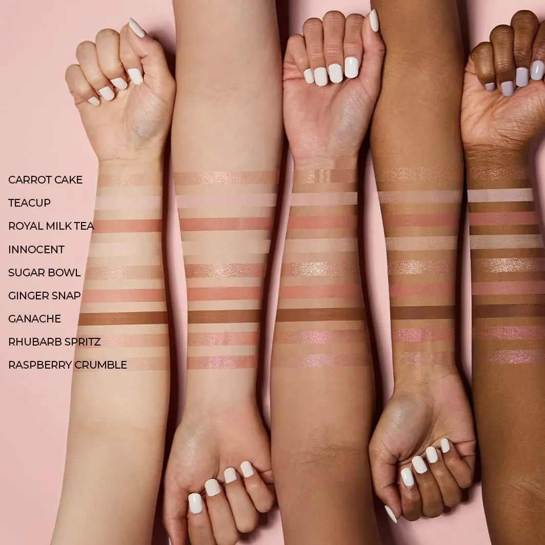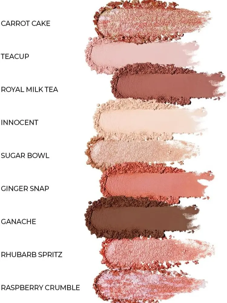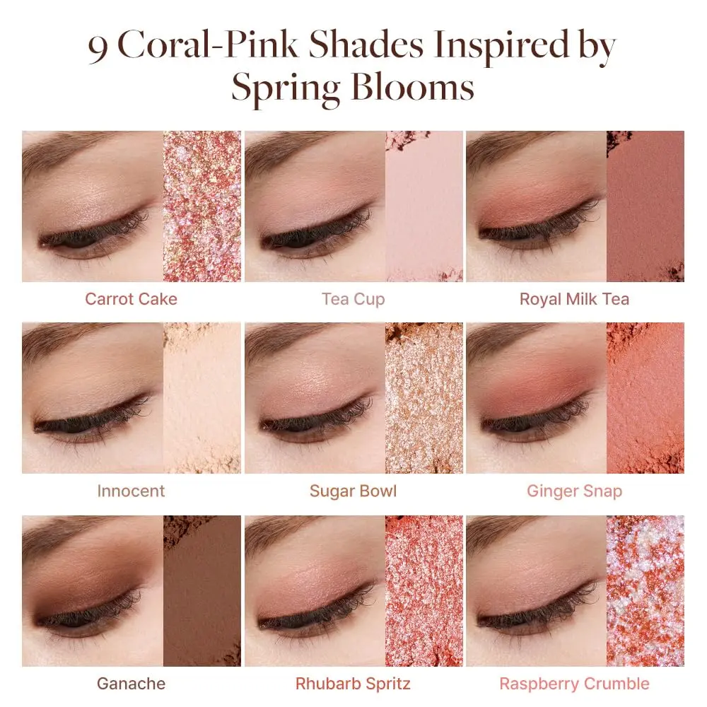 ·Includes soft mattes, luminous shimmers, and standout pearl flake glitters like the fan-favorite “Carrot Cake”—with smooth application and minimal fallout.