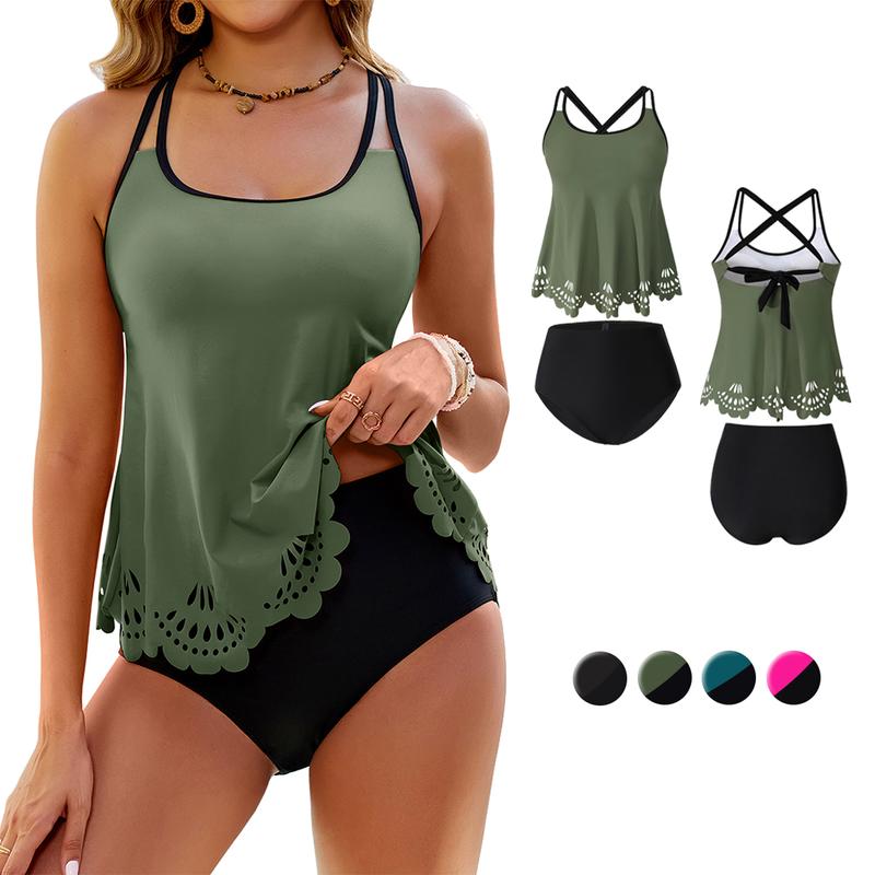 ·Two Piece Swimsuit For Women: Womens swimsuits tankini features a high-waisted bottom for tummy control and complete coverage, ensure enough sense of security. The adjustable crisscross back allows you to customize the fit to perfectly flatter your figure
