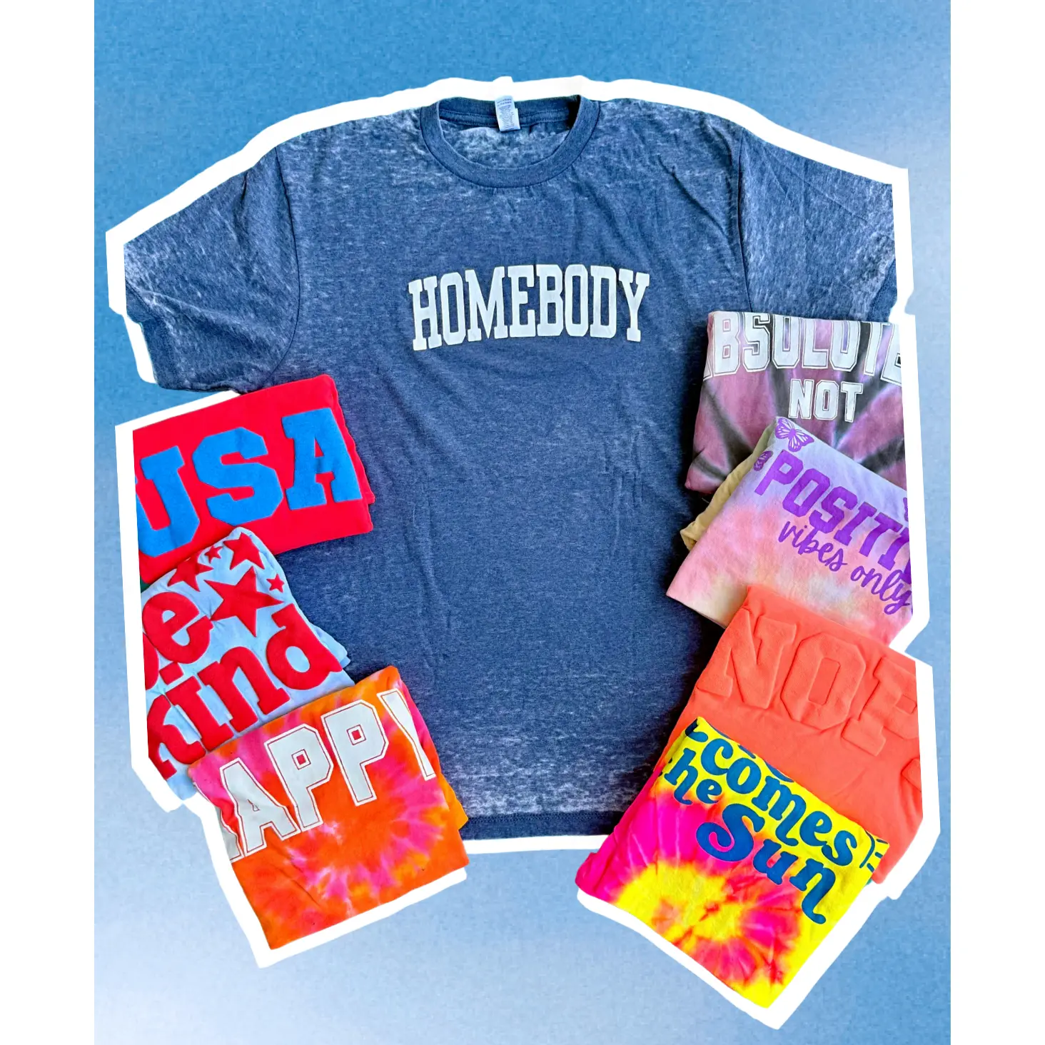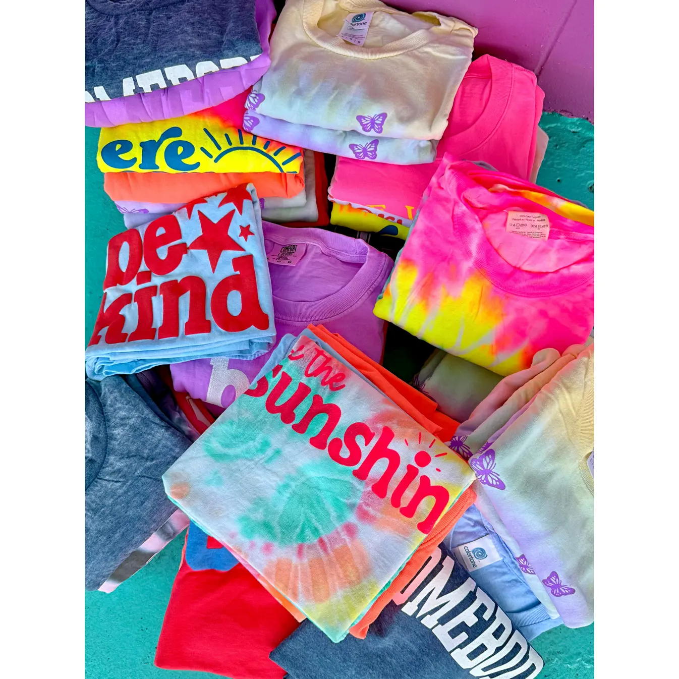 These imperfect-but-still-awesome tees are handmade in our South Florida studio and come in a surprise mix of colors, logos, and styles. No two are the same, and that’s the fun of it! Whether you're lounging, gifting, or getting crafty, these tees are all about kindness, uniqueness, and affordability.