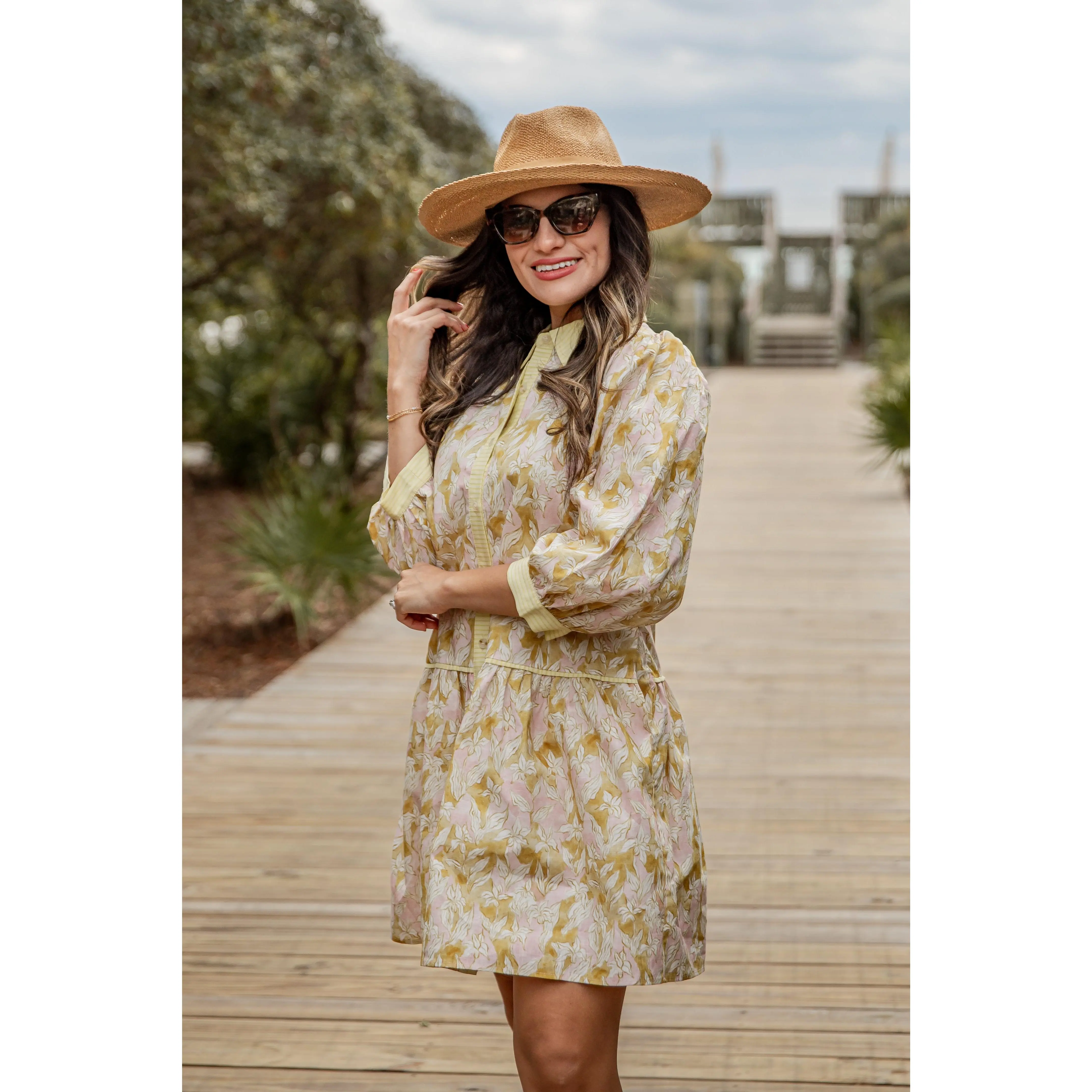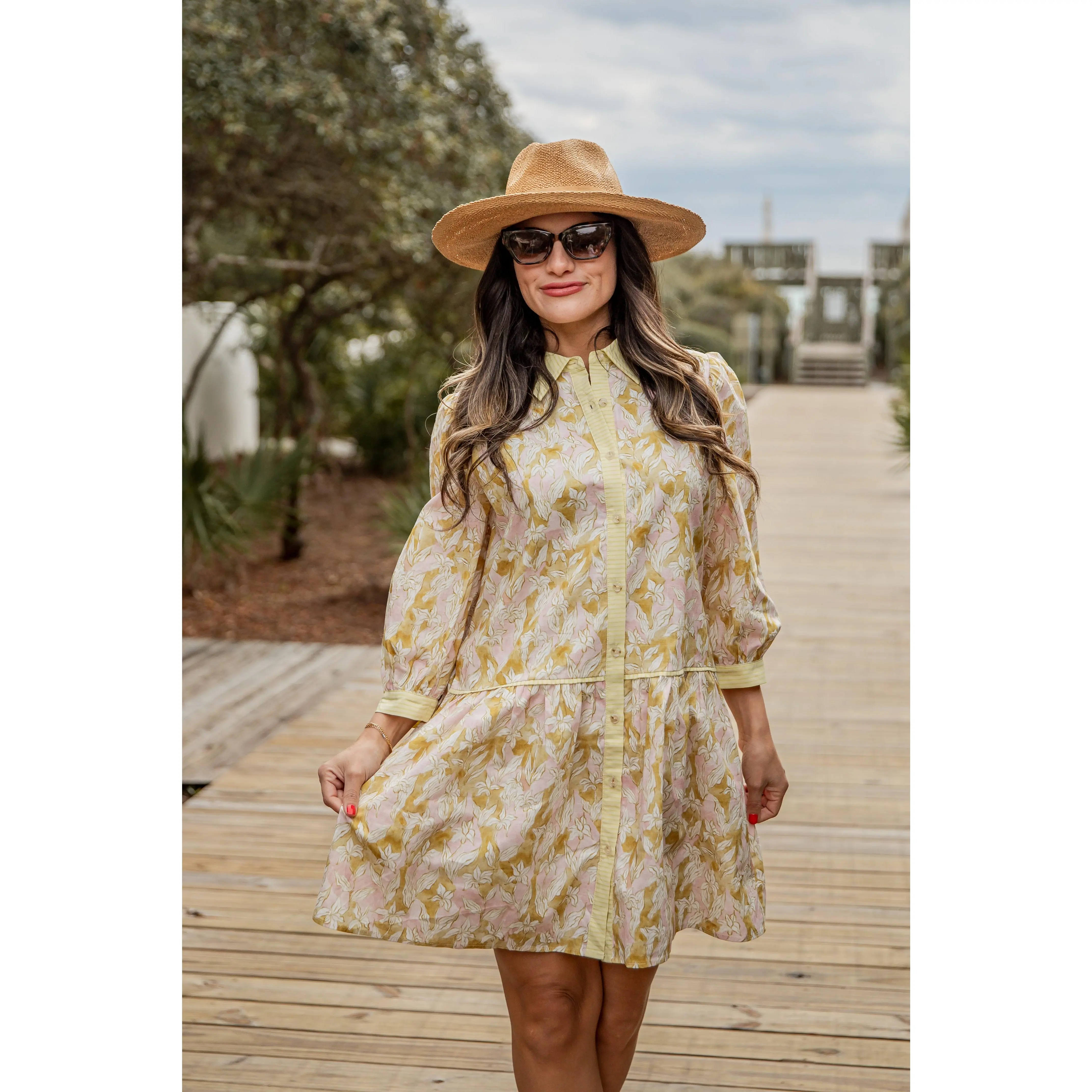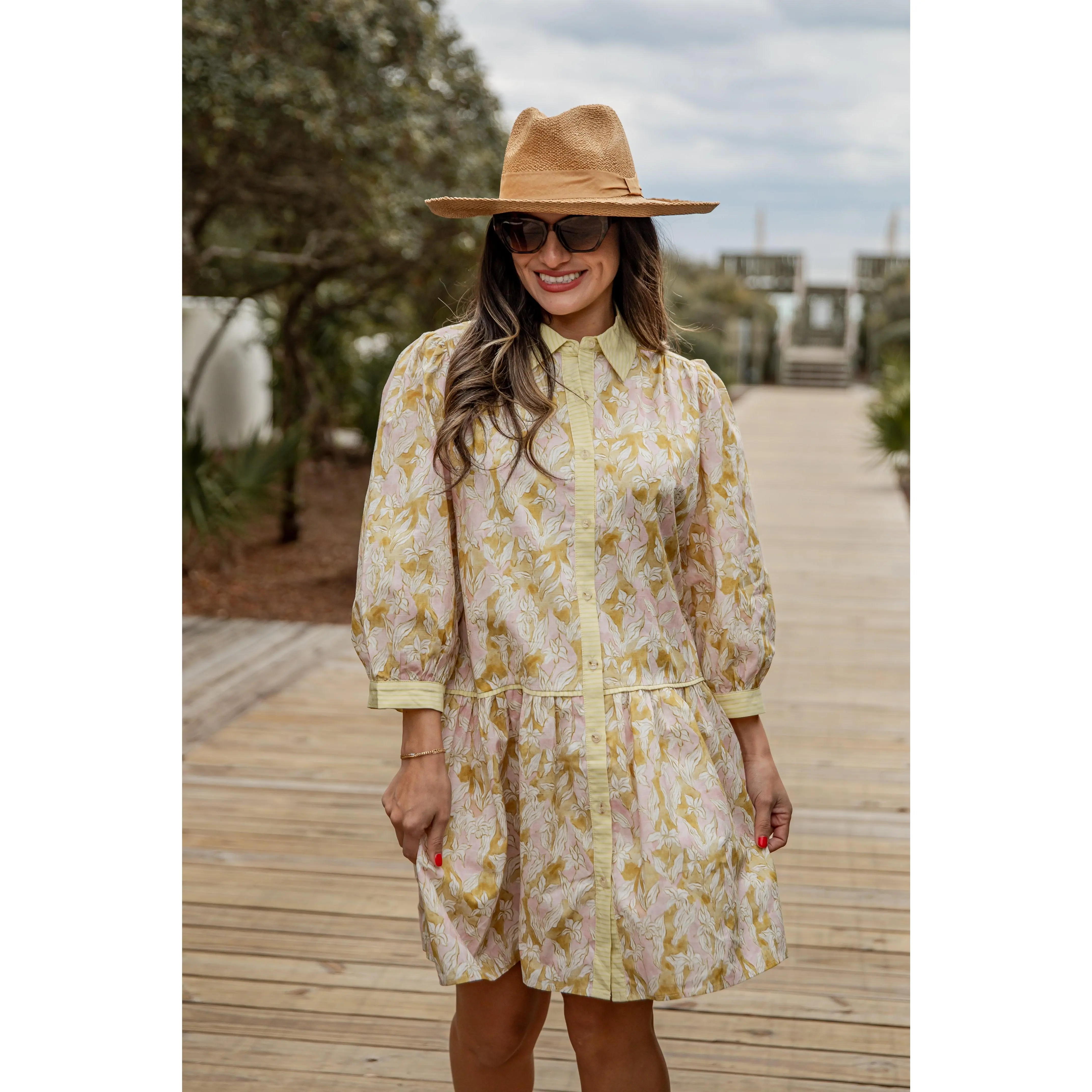 This Blossom Breeze Floral Mini Dress features a delicate floral print accented with contrast collar detailing for a fresh, trend-forward finish. Designed with a relaxed silhouette and soft structure, it delivers comfort without sacrificing style. The button-front design makes it easy to dress up or down, giving you endless styling options from spring events to weekend outings.