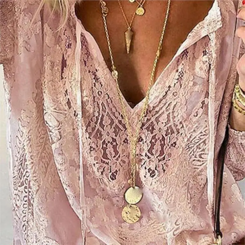 5. 2025 blouse Women's Blouses Spring Summer Fashion Boho Lace Hollow Out Deep V Neck Pullover Shirt Women Elegant Casual Blouse Female Tops White Formal women's summer outfits Fabric Soft Womenswear Chic