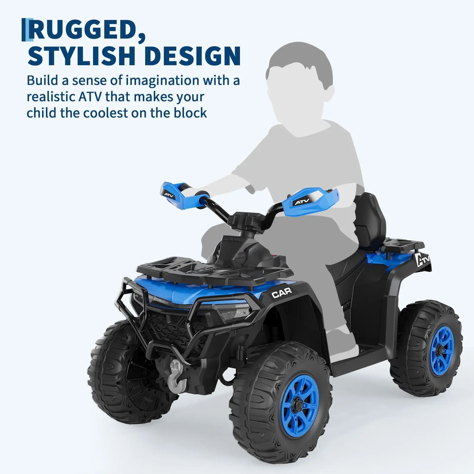 【4 Wheeler for Ages 3-8】Built with sturdy construction to withstand outdoor play. The comfortable seat and ATV-style design accommodate children ages 3-8, bridging the gap between toddler cars and advanced 24V ride-ons. A great first kids ATV that combines durability, safety, and fun
