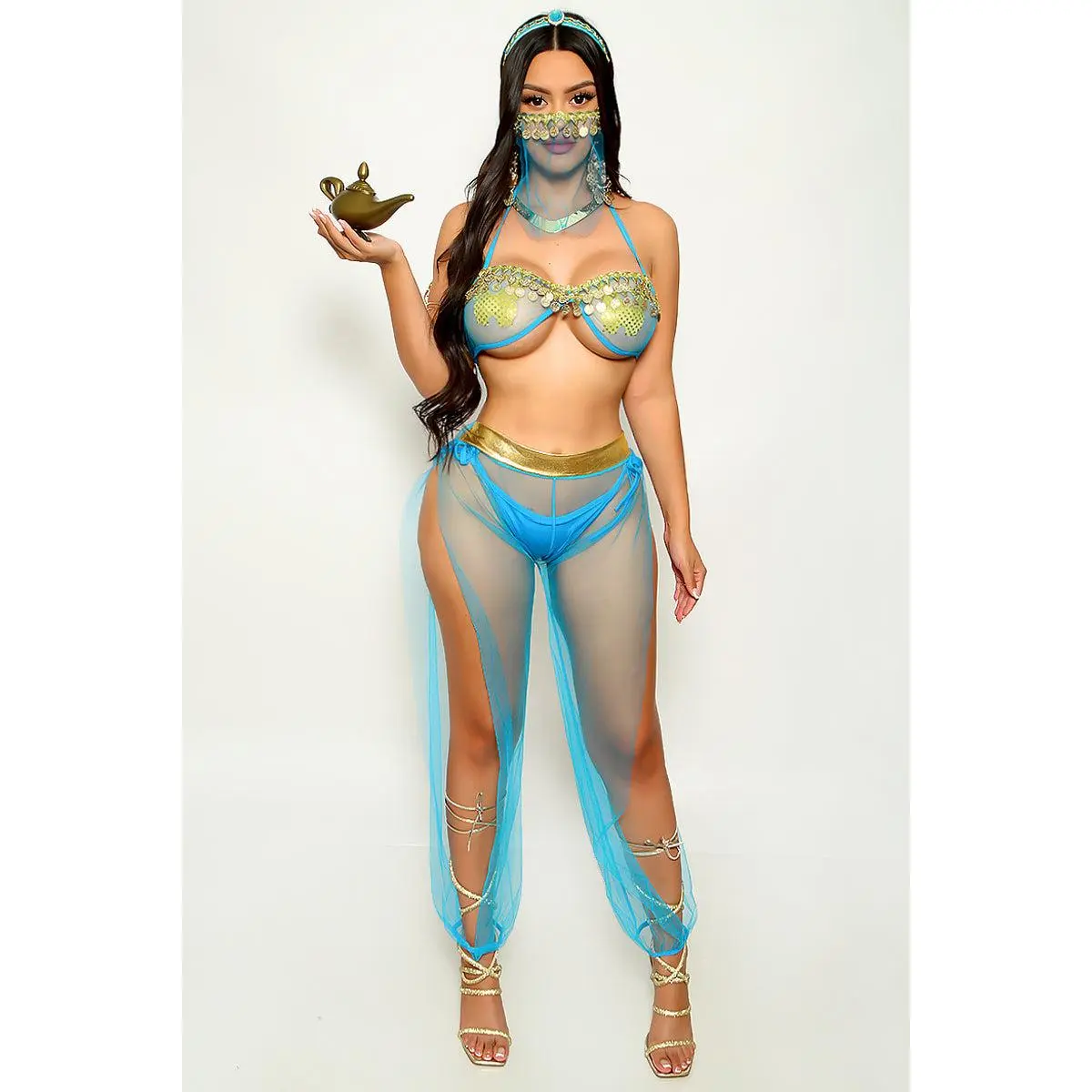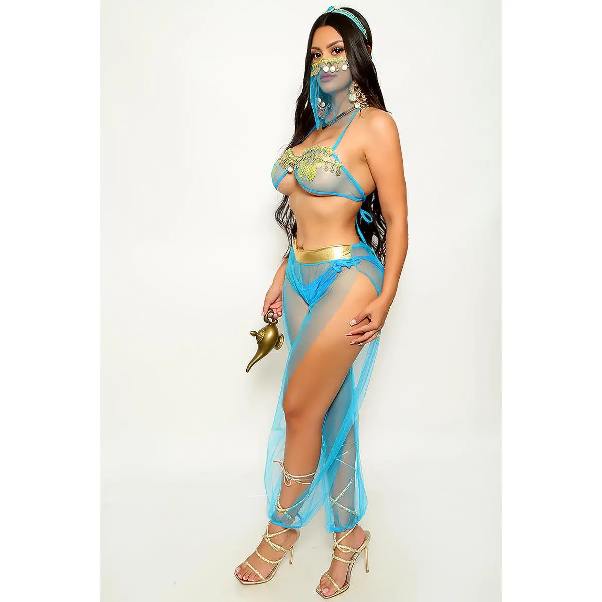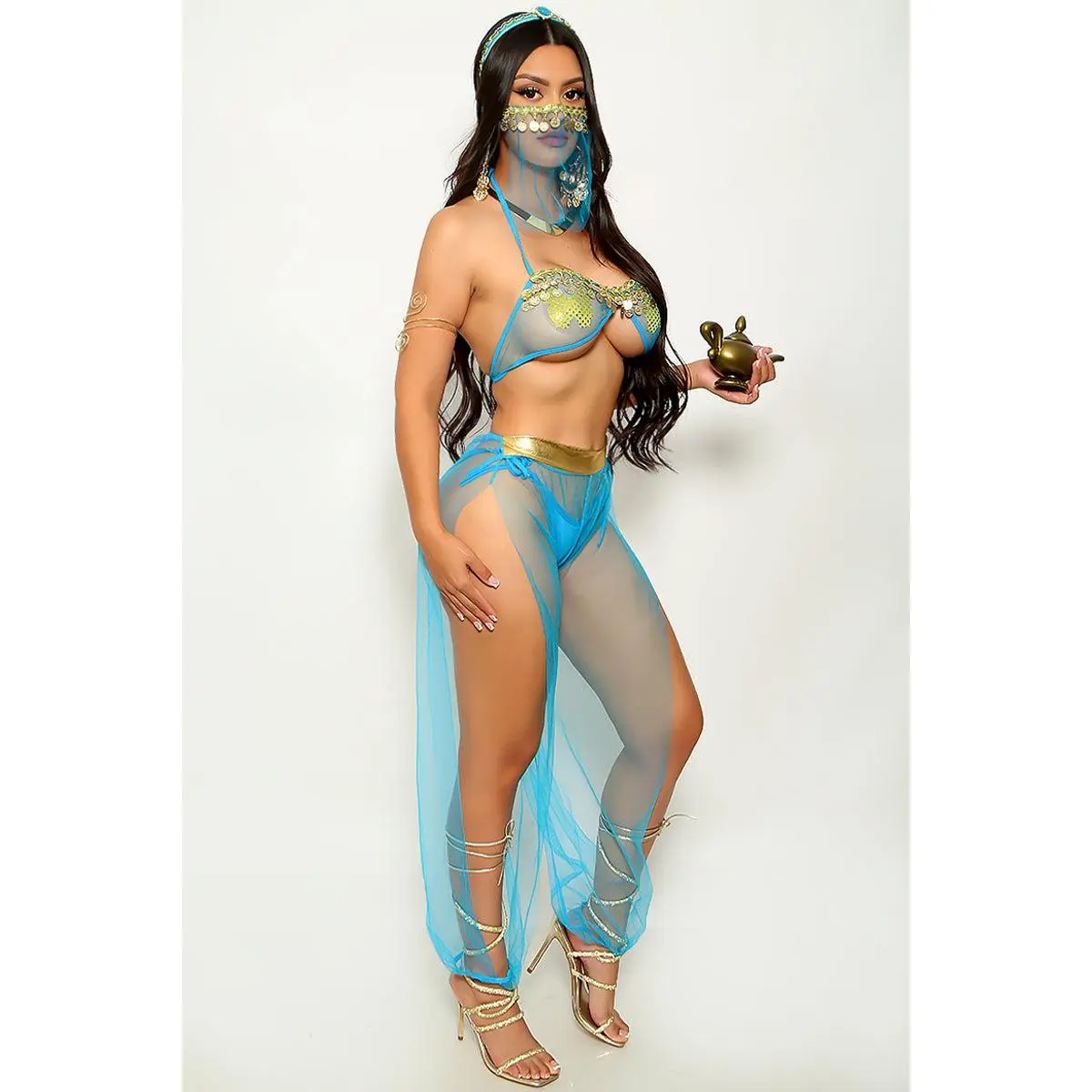 Blue Gold Coin Mesh 5Pc Sexy Princess Jas Costume