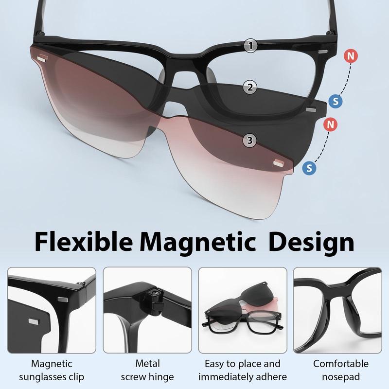 5. Blue Light Blocking Glasses for Women Men, Fashion Cool Glasses with 2 Pack Magnetic Clip on Lens, Gaming TV Phone Glasses
