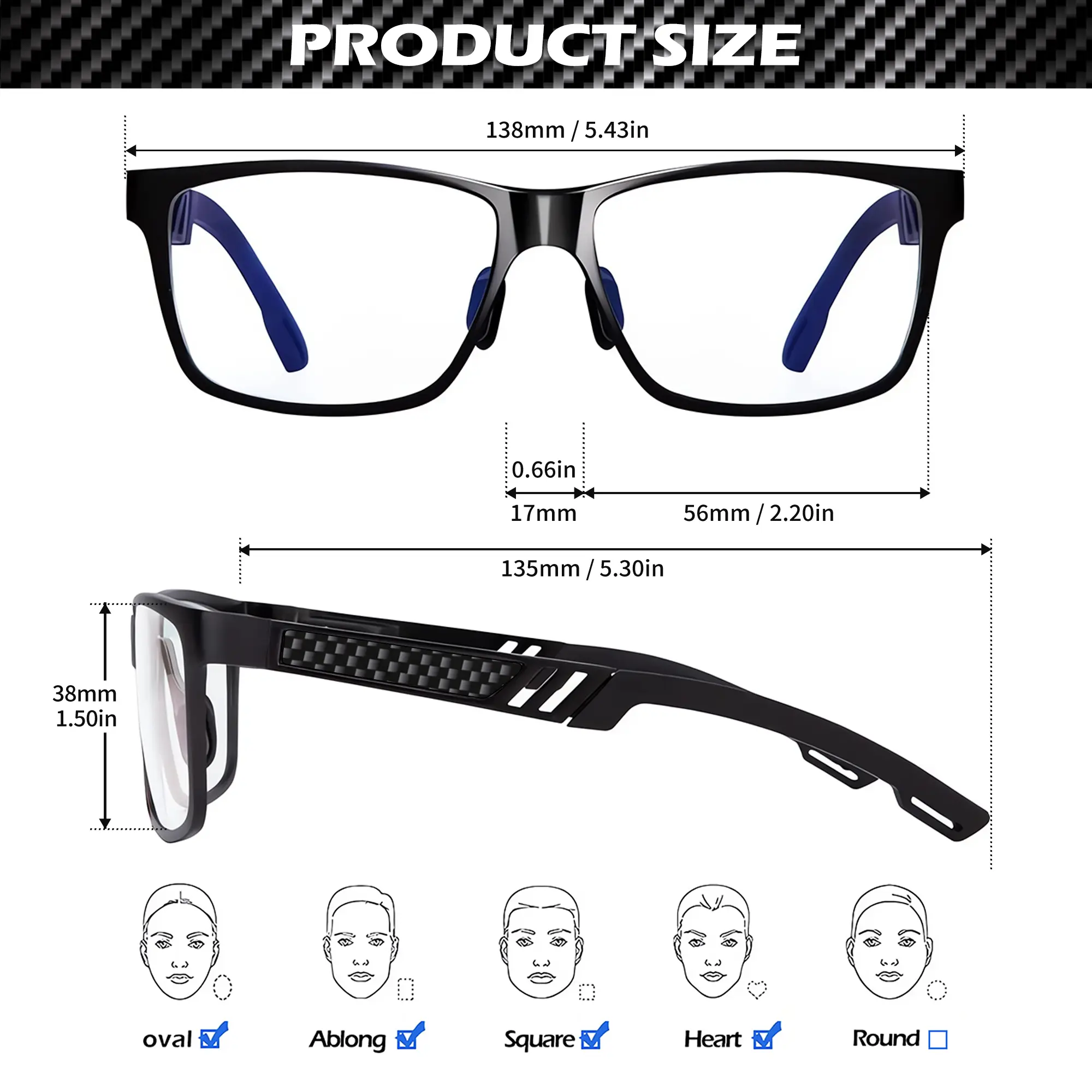 Blue Light Blocking Glasses For Men Work And Study Gaming Al-Mg Metal Anti Eyestrain UV400 HD Lenses