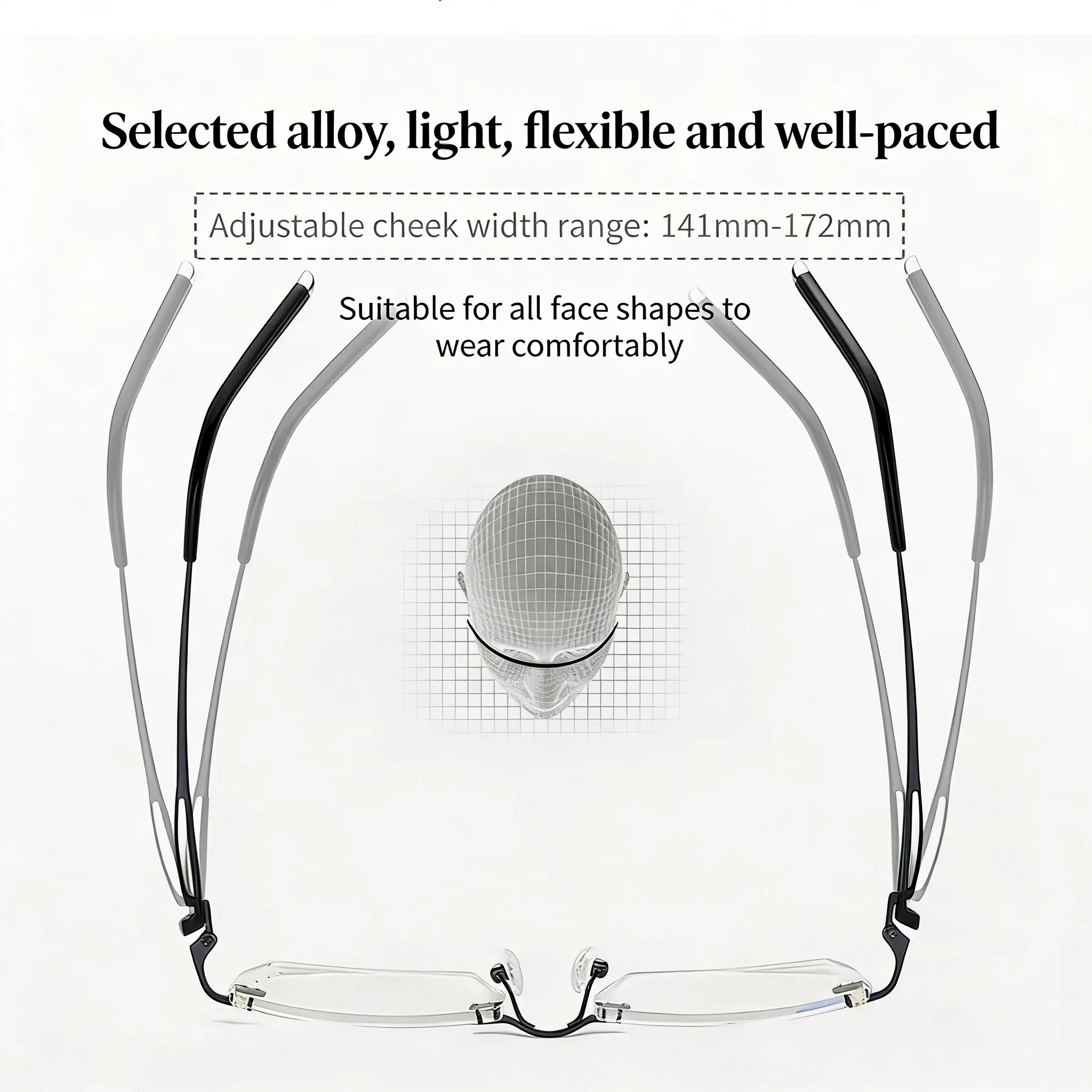 ·Custom-Like Fit: Adjustable nose pads and flexible temple arms adapt to your face shape
