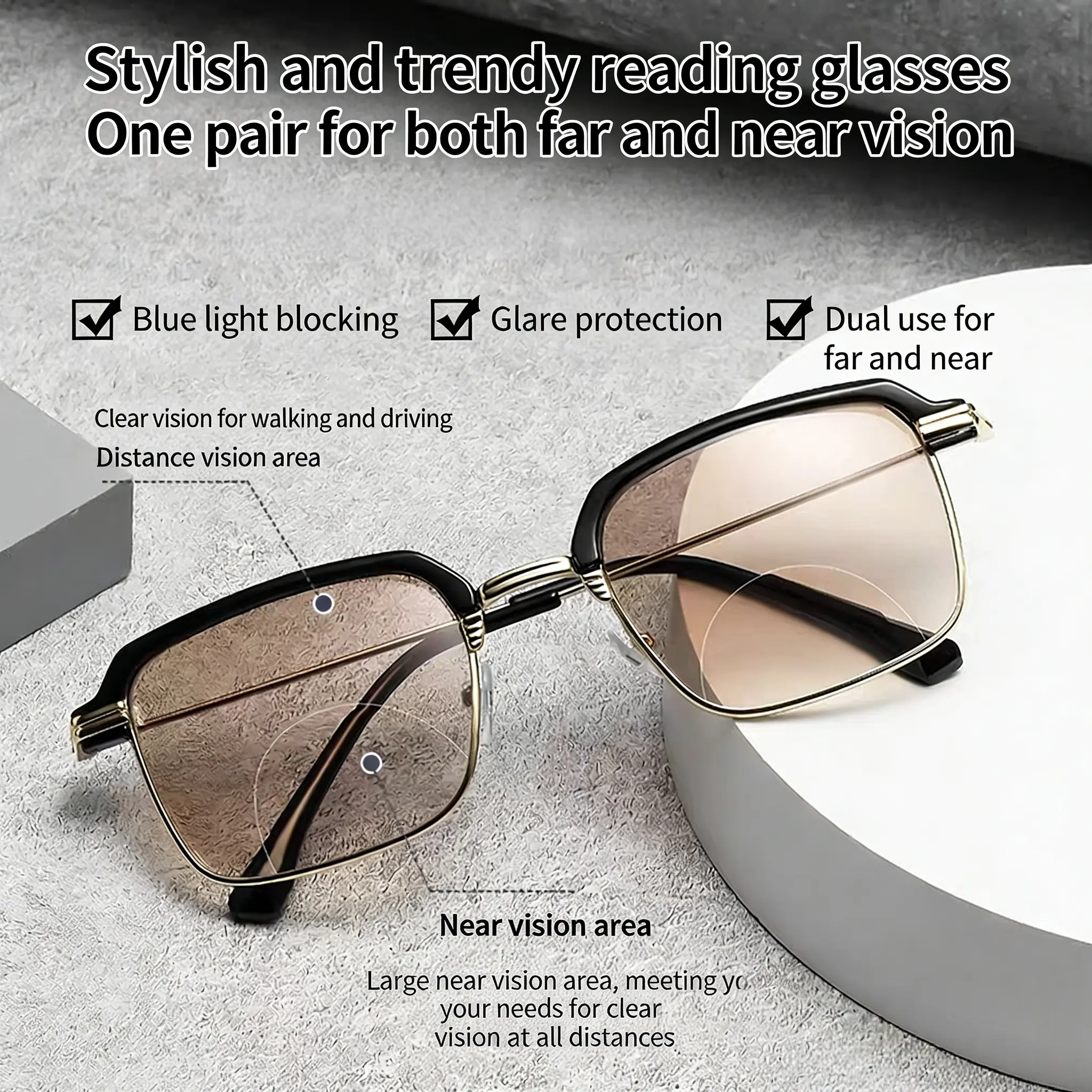 This product is a near-vision reading glasses, only suitable for close-up use such as reading books and looking at mobile phones.Do NOT wear them while driving, walking, or looking at distant objects, as this may cause blurred vision, dizziness, and compromise safety.