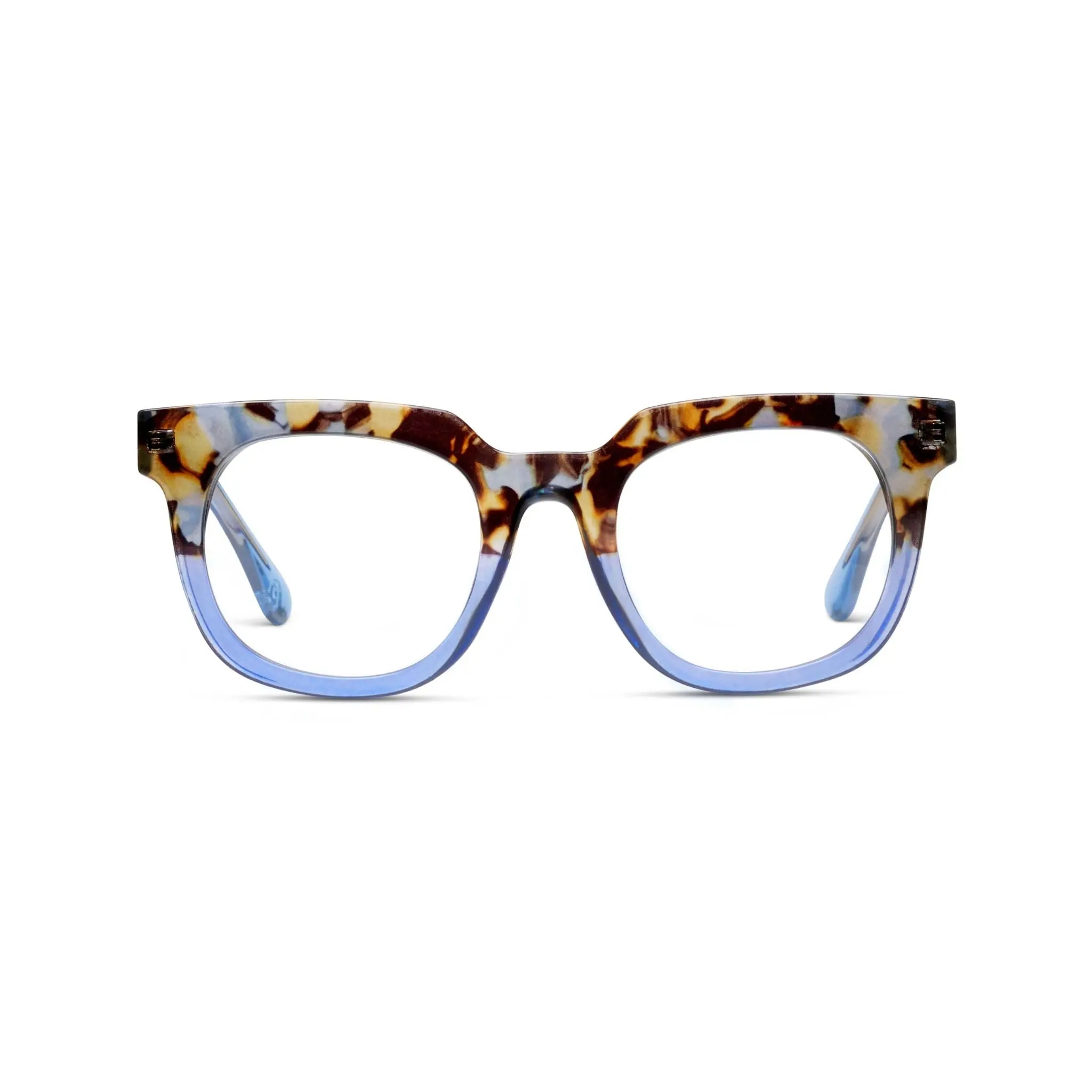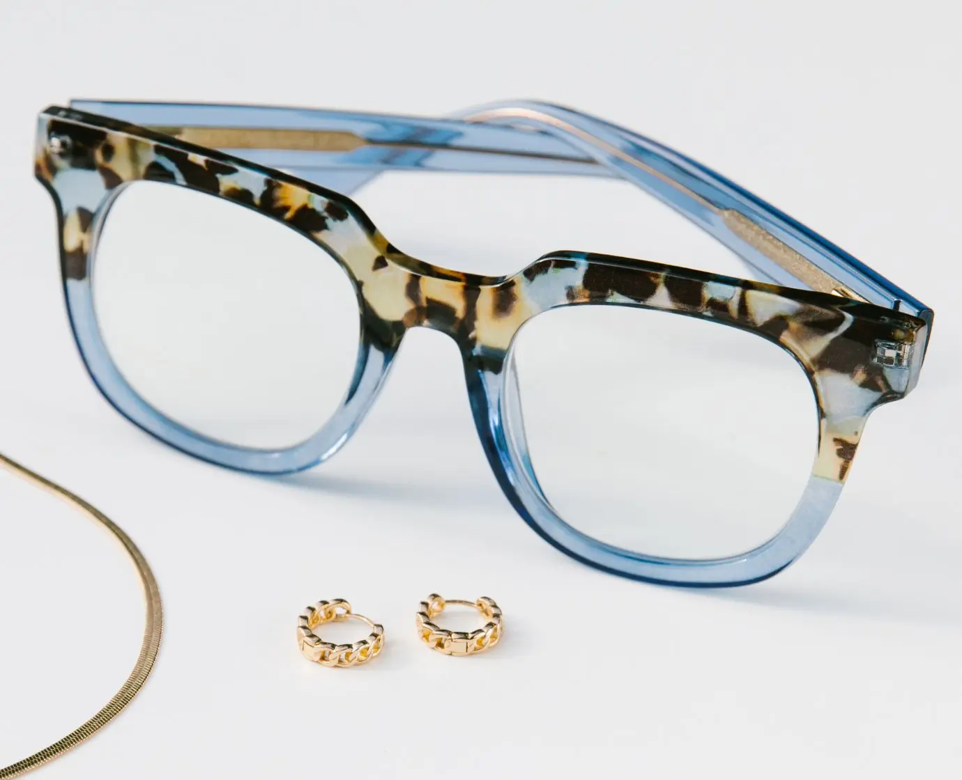 Showbiz's bold-yet-subtle style is completed with a soft square shape and a gold wire core in the temple—the perfect touch of unexpected luxe.
