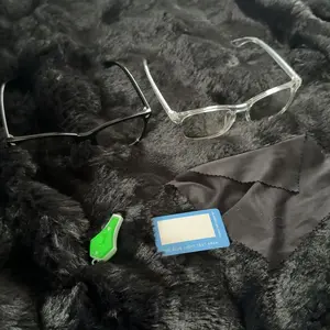 It comes with microfiber cloth to clean glasses and the thing to repair if broken.