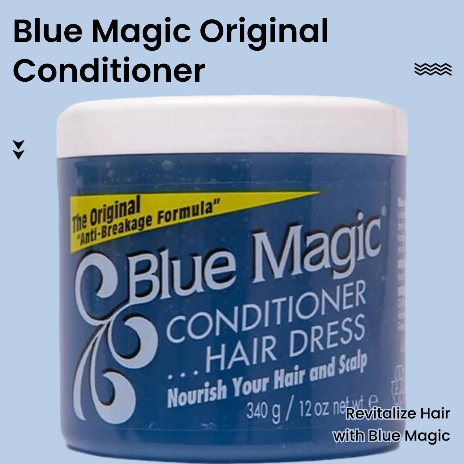 Nourish your hair with Blue Magic Original Conditioner! This leave-in formula fights anti-breakage, ensuring your hair stays lustrous. It prevents dryness and split ends without greasy residue. Perfect for daily use, it conditions hair and scalp for extended periods.