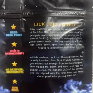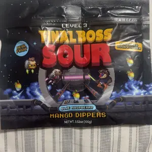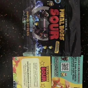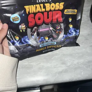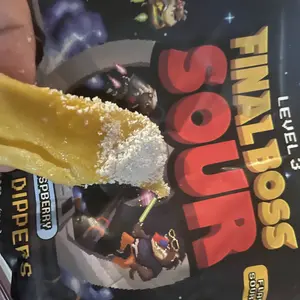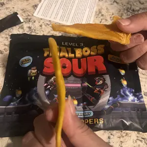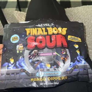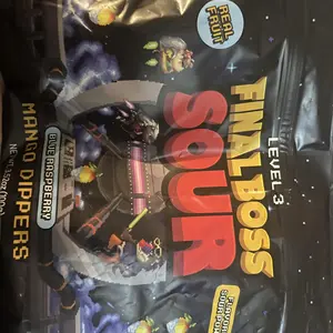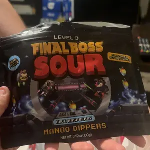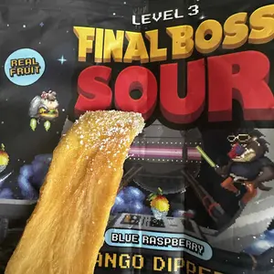 Not your average sour candy from the grocery store!! It’s definitely several steps ABOVE!! You get actual real Mango fruit pieces. The sour powder dip is next level and is VERY sour & delicious. Because of its uniqueness I am rating Final Boss Sour Mango a 10. Your eyes WILL WATER!!