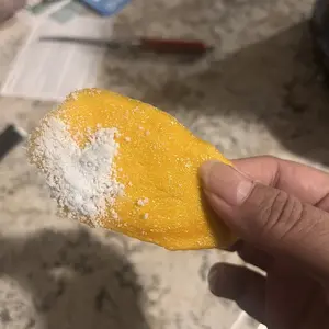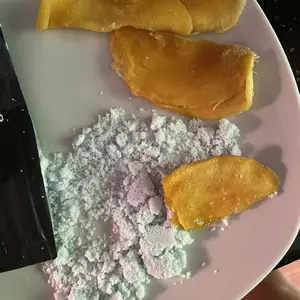 Package arrived quickly, just as expected! The zip lock bag had two sections—one with 5-6 thick, juicy mango slices (not dried at all), perfect for dipping. The other was PACKED with super sour blue raspberry powder—seriously overflowing! The combo of sweet mango and sour powder is unbeatable. You definitely get your money’s worth. Will 100% be ordering again!