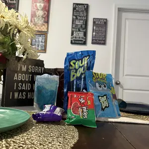 Ā·Skwinkles Salsaghetti ā A tangy, candy classic that pairs wonderfully with the blue raspberry theme.