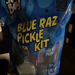 Ā·Sourboy Blue Raspberry Pickle ā The centerpiece of the kit! Made by Sourboy, this pickle is infused with bold blue raspberry flavors for a tangy-sweet twist thatās truly unforgettable.