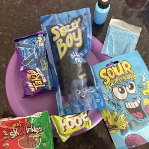 Ā·Takis Blue Heat ā A crunchy, spicy snack that perfectly contrasts the sweetness of the blue raspberry flavors.