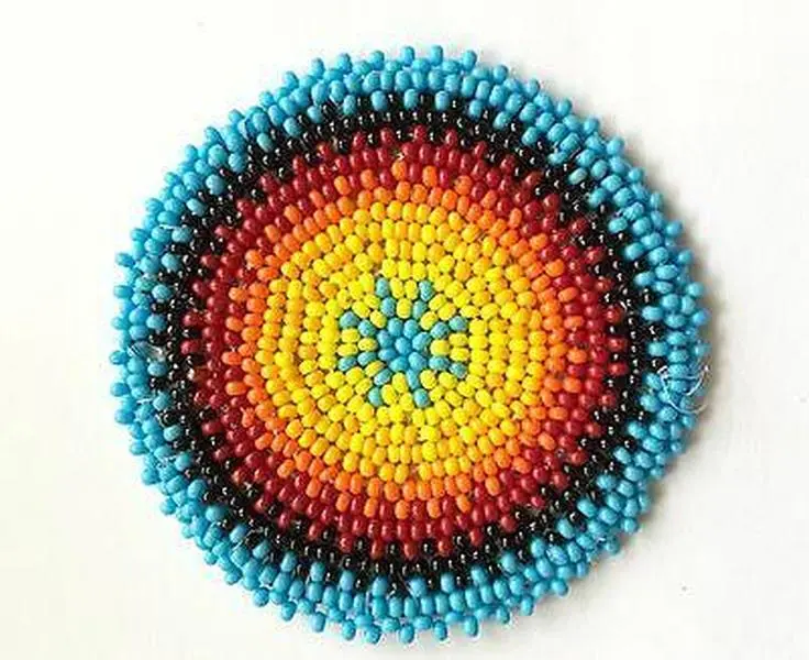 Handmade Beaded Rosette Medallion Patch Applique - Four Directions Design - 2.5 Inch Round