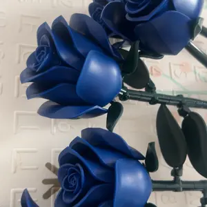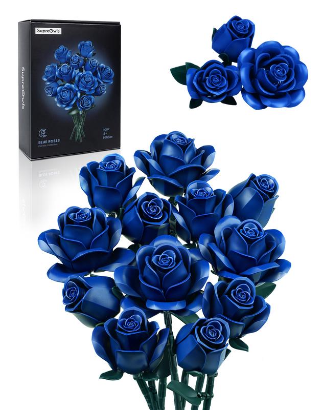 [Unique Blue Rose Flower Bouquet] - This rose building set features different petal shapes representing the stages of a rose’s life, with a bold blue matte design for a unique and stunning bouquet.
