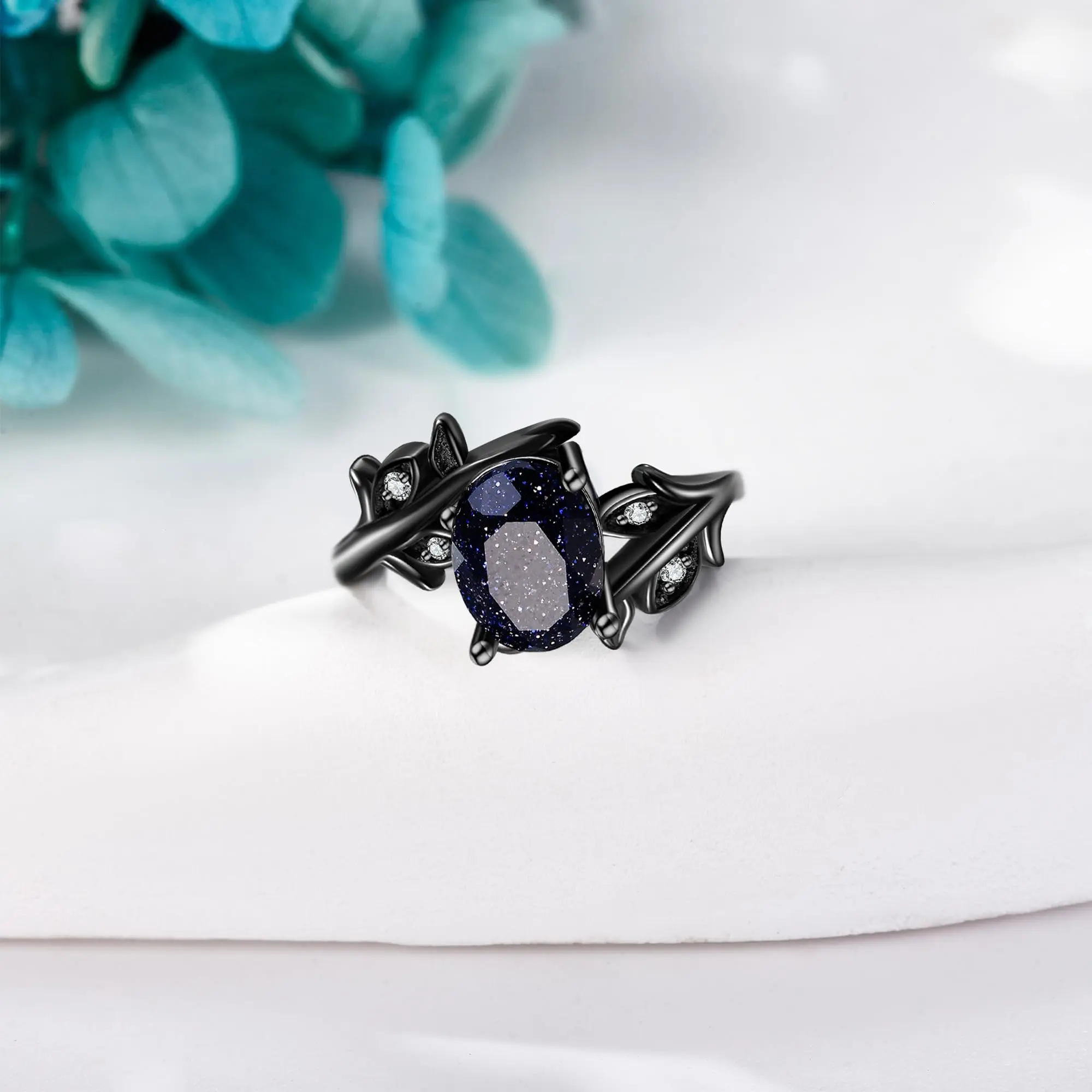 ·Dainty Blue Sandstone Ring: Gothic oval cut blue sandstone engagement ring.You could see the whole galaxy in this attractive natural blue sandstone.This romantic ring would be the witness of your love.