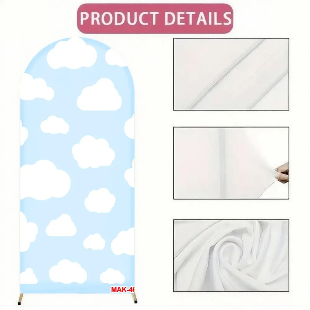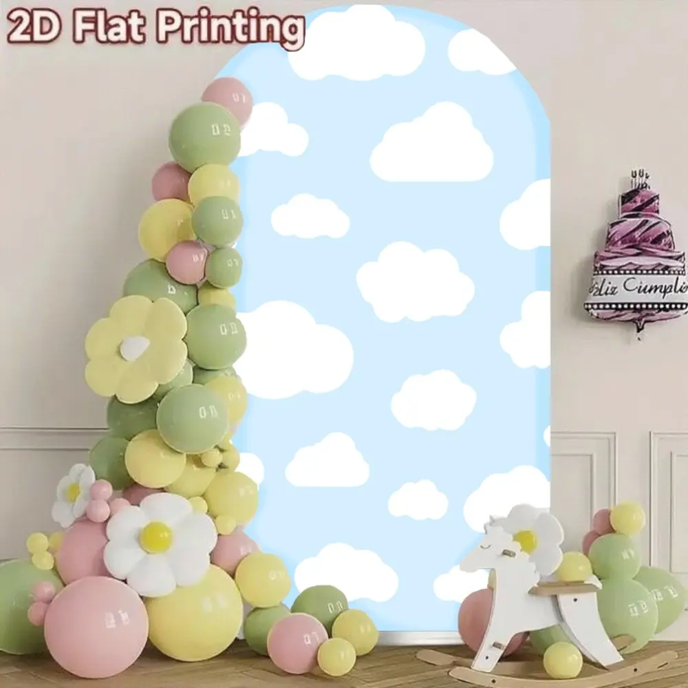 Blue Sky White Clouds Arch Backdrop Cover Custom 2-Sided Fabric for Baby Shower Birthday Party Decoration Decor Background