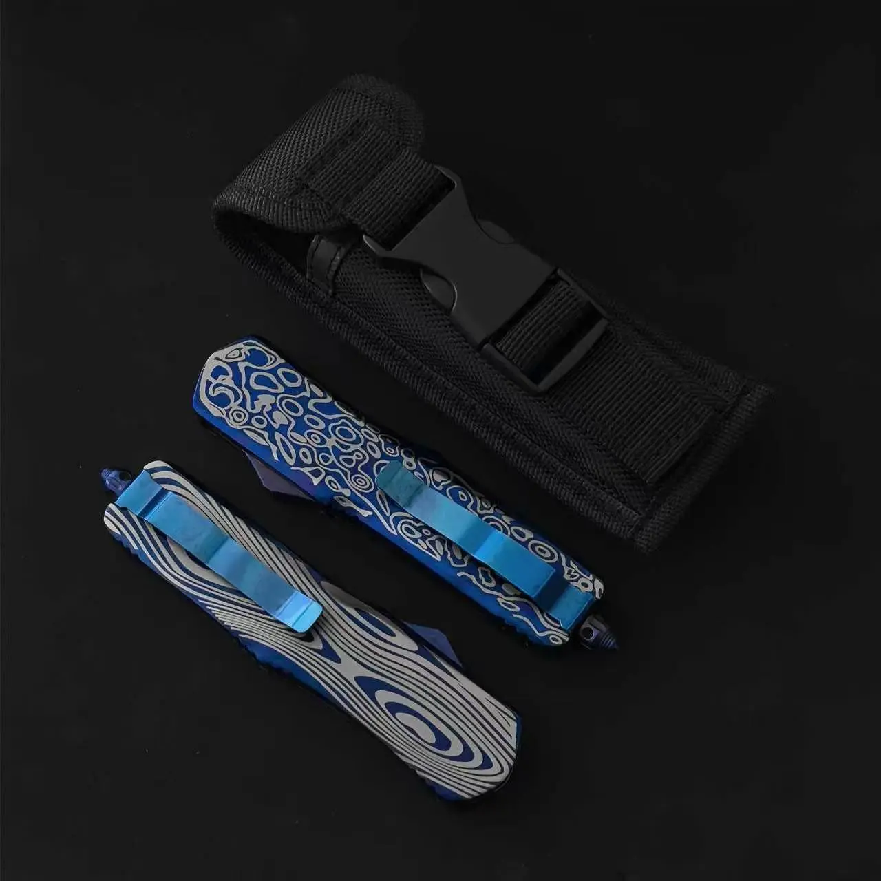 Blue Titanium Edition All-metal feel, micro-technology titanium-zinc alloy outdoor camping gear, multi-functional everyday carry tool knife, outdoor car window breaker