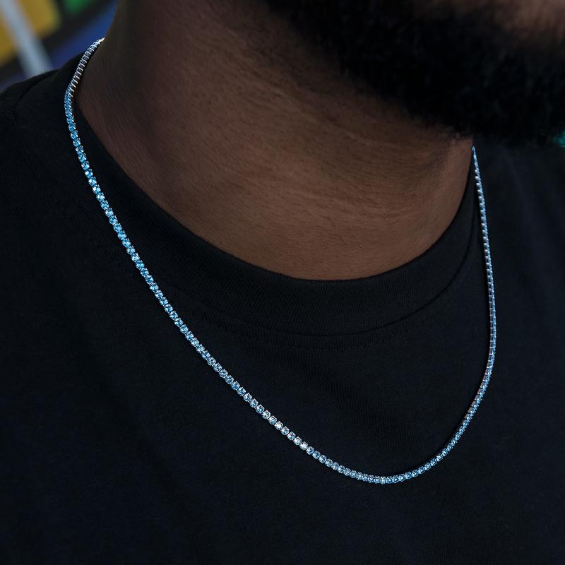 Blue Topaz Diamond Micro Tennis Chain in White Gold