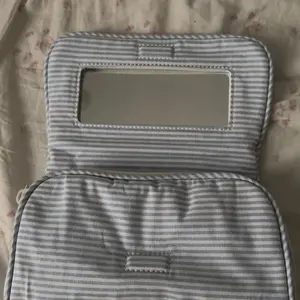 Keep your essentials cute and organized with the Blue & White Striped Cosmetic Bag from John Galt—the perfect travel buddy for all your on-the-go moments. This soft zip-up pouch features a built-in mirror and a classic striped design that’s both functional and totally aesthetic.
