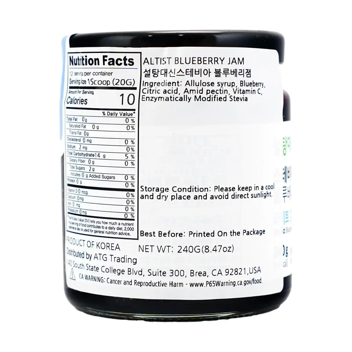 5. ALTIST Korean Blueberry Jam 220g Low Calorie Sugar Free Perfect for Toast