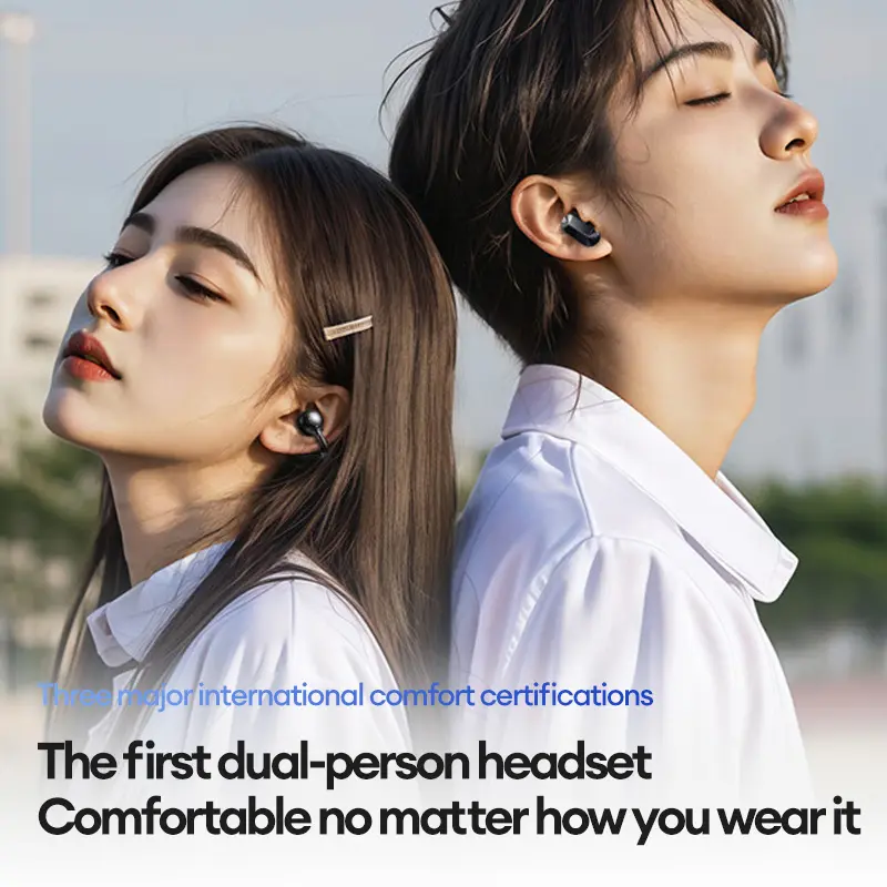 Ever struggled with earbuds that just won't stay put or lose connection mid-run? Meet your new workout buddy: this 2-in-1 wireless Bluetooth headset that’s all about comfort and performance. Whether you prefer in-ear snugness or clip-on ease, you get both styles for a perfect fit all day long. Thanks to Bluetooth 6.0, enjoy ultra-fast, lag-free connection whether you're gaming, commuting, or streaming your favorite tunes. Rain or sweat won’t stop you either—these IPX5-rated earbuds are built tough for any activity. Plus, the dual earphones connect simultaneously to one device, so you and your partner or buddy can share music or movies wirelessly without missing a beat. The advanced directional sound tech cuts down on sound leakage, while dual microphones handle noise cancellation for crystal-clear calls. With up to 8 hours per earbud and a charging case extending battery life to 140 hours, your music never has to stop. Inside the box, you’ll find two pairs of earbuds (in-ear and clip-on), a charging case, and a USB cable. Ready to upgrade your audio game with style and comfort? Grab these earbuds and enjoy music your way, wherever life takes you!