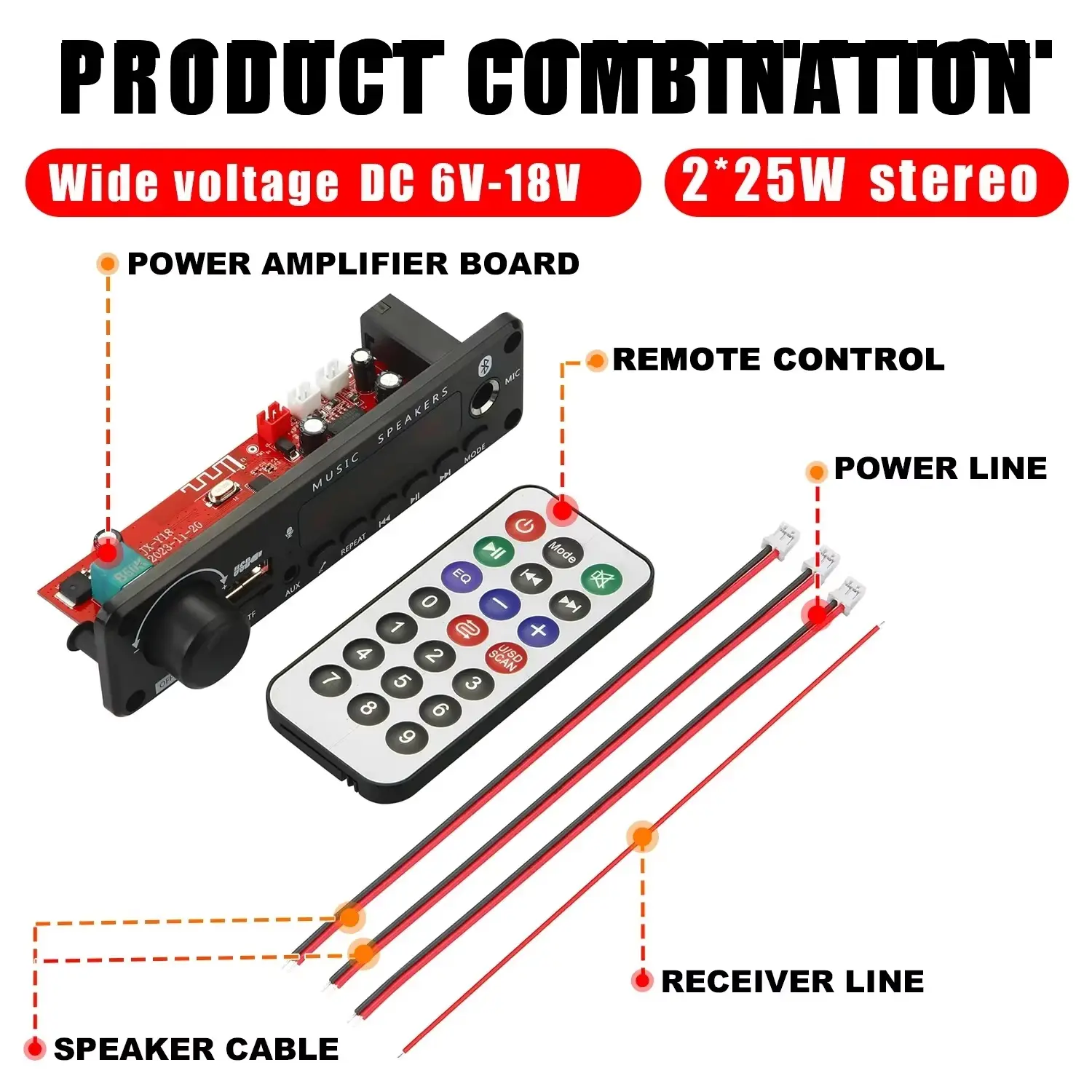 Main functions MP3/USB/TF/LINE IN/FM/BLUETOOTH/Remote control
