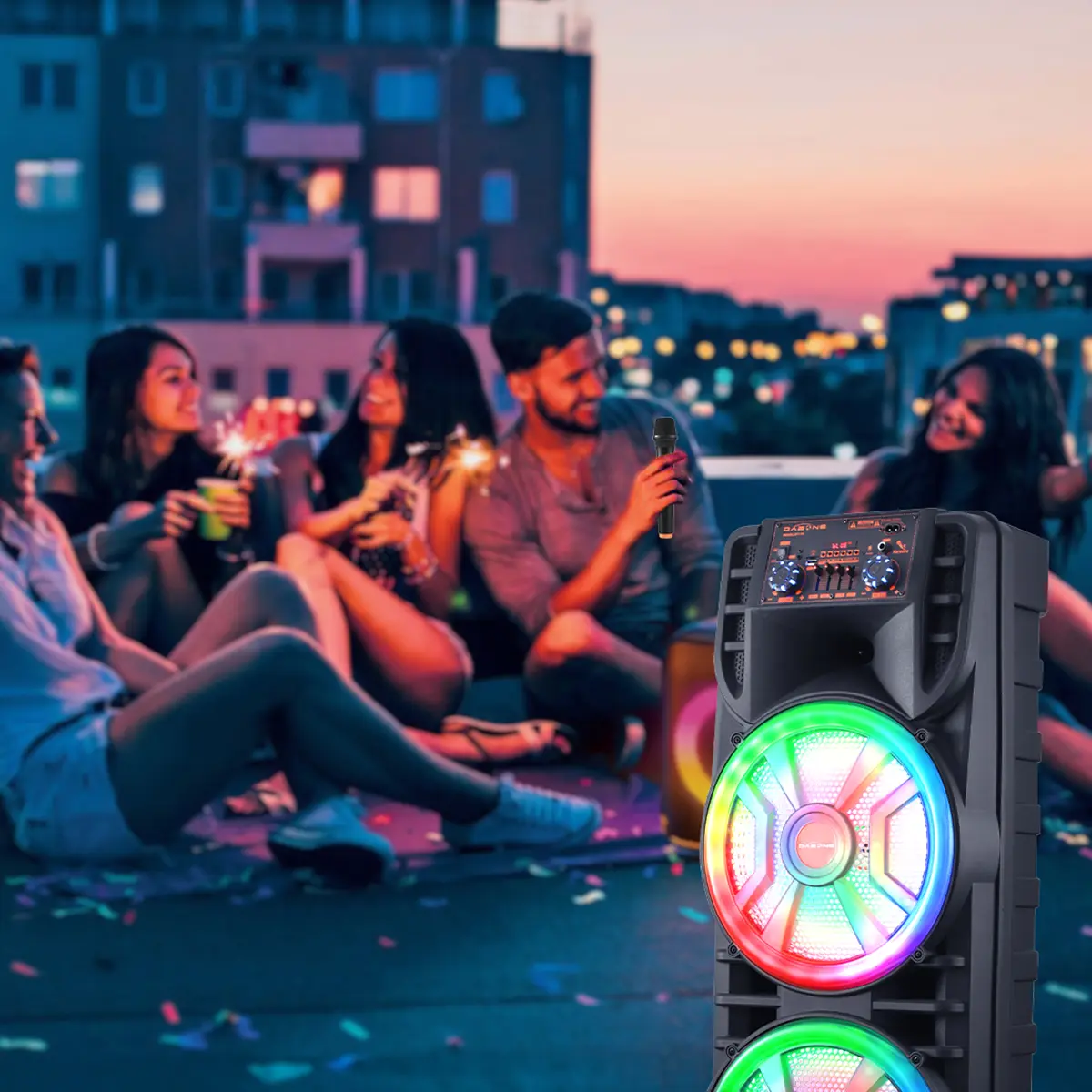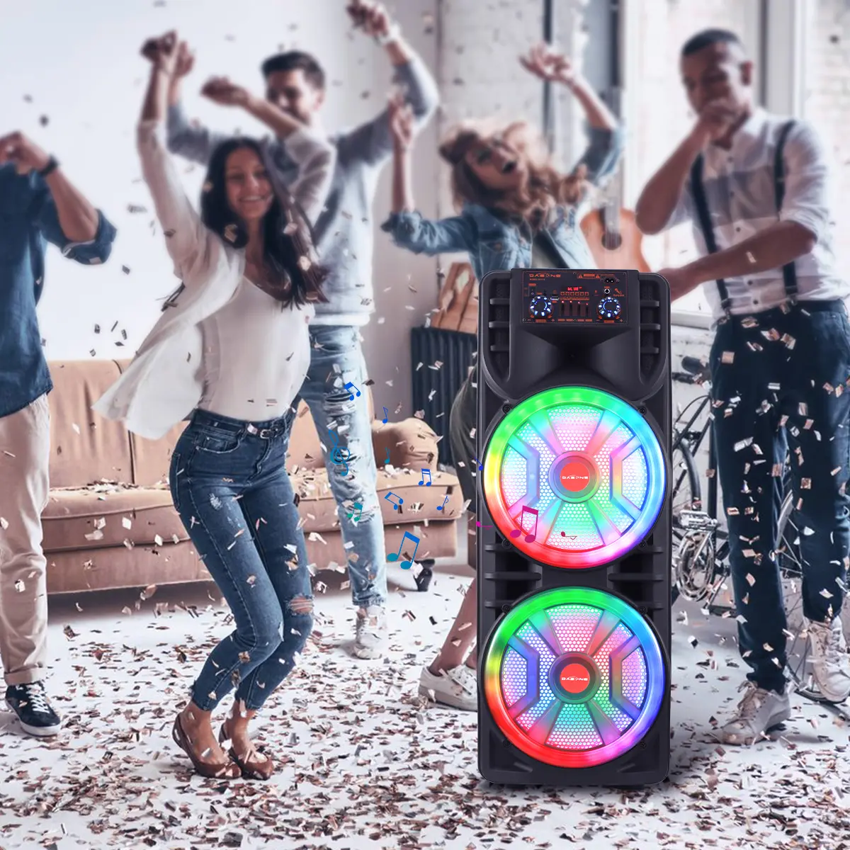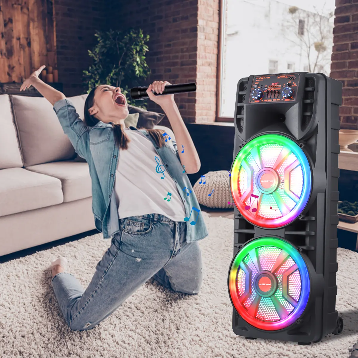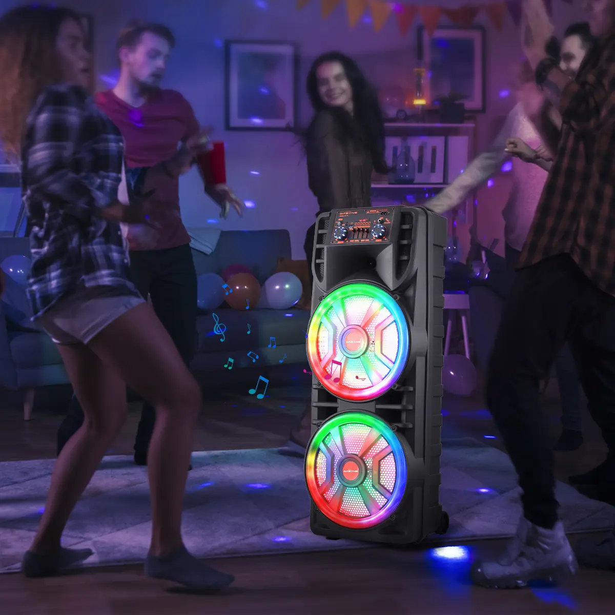 Strong Bass Speaker: The speaker system features high-efficiency dual 12" woofers that deliver deep bass while maintaining clear mids and highs even at higher volumes. This setup allows users to crank up the volume and experience deep, natural low vibrations for an immersive party atmosphere.