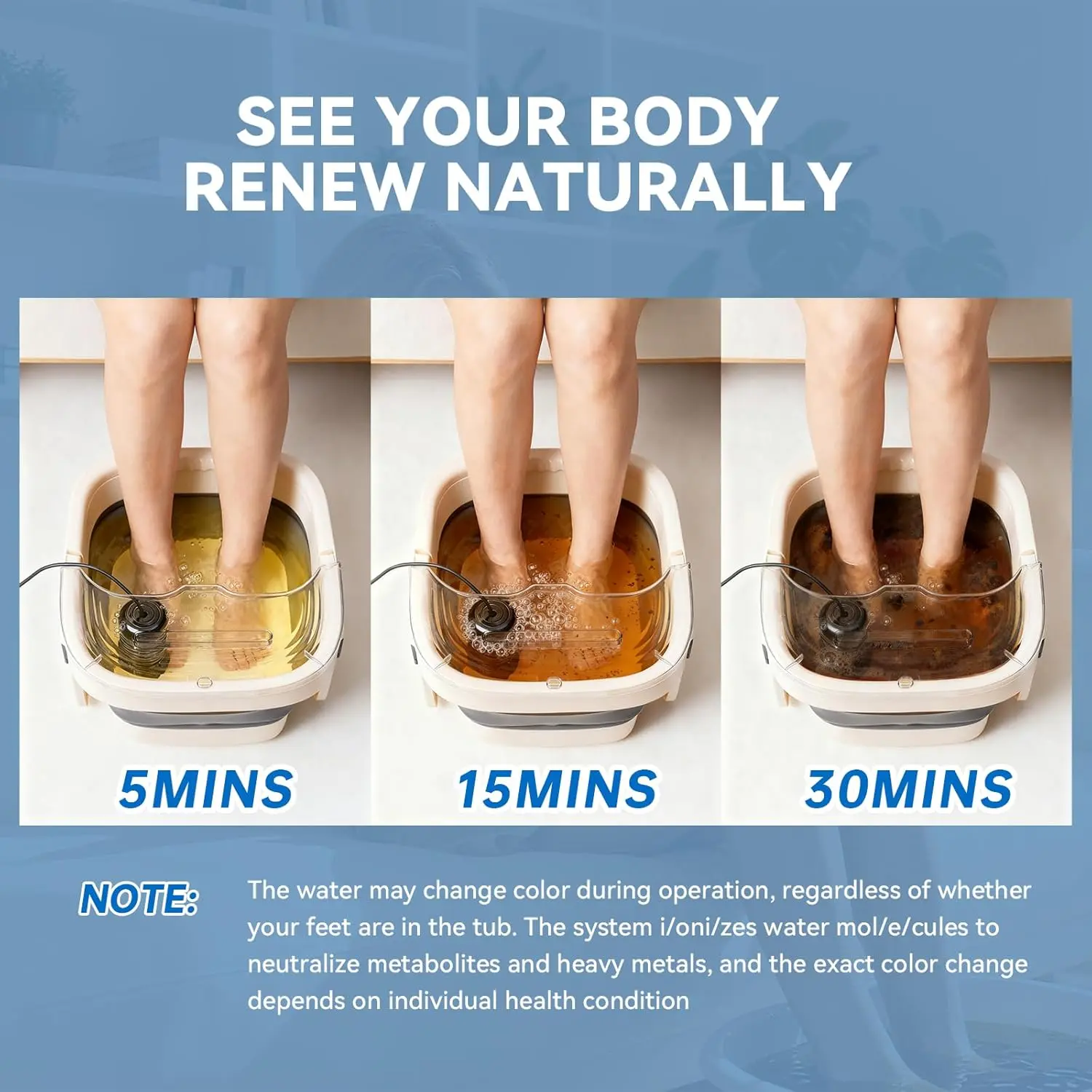 ·Ionic Foot Spa At Home: Skip the salon visits and costly treatments. Enjoy a professional-grade ionic foot spa right at home. Advanced array technology ionizes the water to support your body’s natural detox process, leaving you feeling lighter, refreshed, and balanced