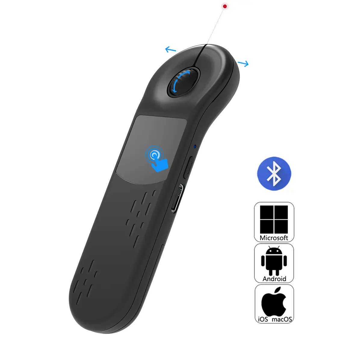 Ever fumble with multiple remotes or struggle to control your presentation smoothly? This Bluetooth Laser Air Mouse combines a responsive touchpad and laser pointer in one sleek, pen-style device. Whether you're presenting in PowerPoint, Keynote, or scrolling through TikTok videos, it lets you navigate slides, control volume, and click hyperlinks effortlessly. Its rechargeable battery means no more hunting for replacements, and dual Bluetooth plus 2.4GHz connectivity ensures it works with your Mac, PC, or laptop—no matter the port situation. The package includes the presenter, a handy 2-in-1 USB/Type-C receiver, a charging cable, and a user manual to get you started quickly. Lightweight and portable, it’s perfect for work, study, entertainment, or even fitness sessions where you need remote control. Upgrade your presentation game and daily device control with this versatile, easy-to-use gadget. Ready to impress your audience or just make life easier? Grab yours today and take command with style!