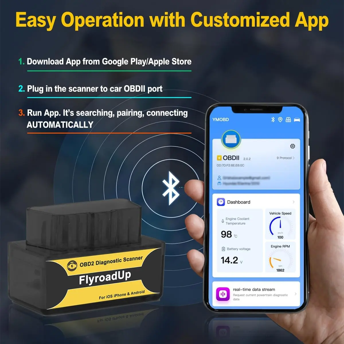 ·Fast & Easy Operation: Comes with the free YMOBD app for one-click automatic connection. Plug in, open the app, and start scanning within seconds—no manual pairing required.