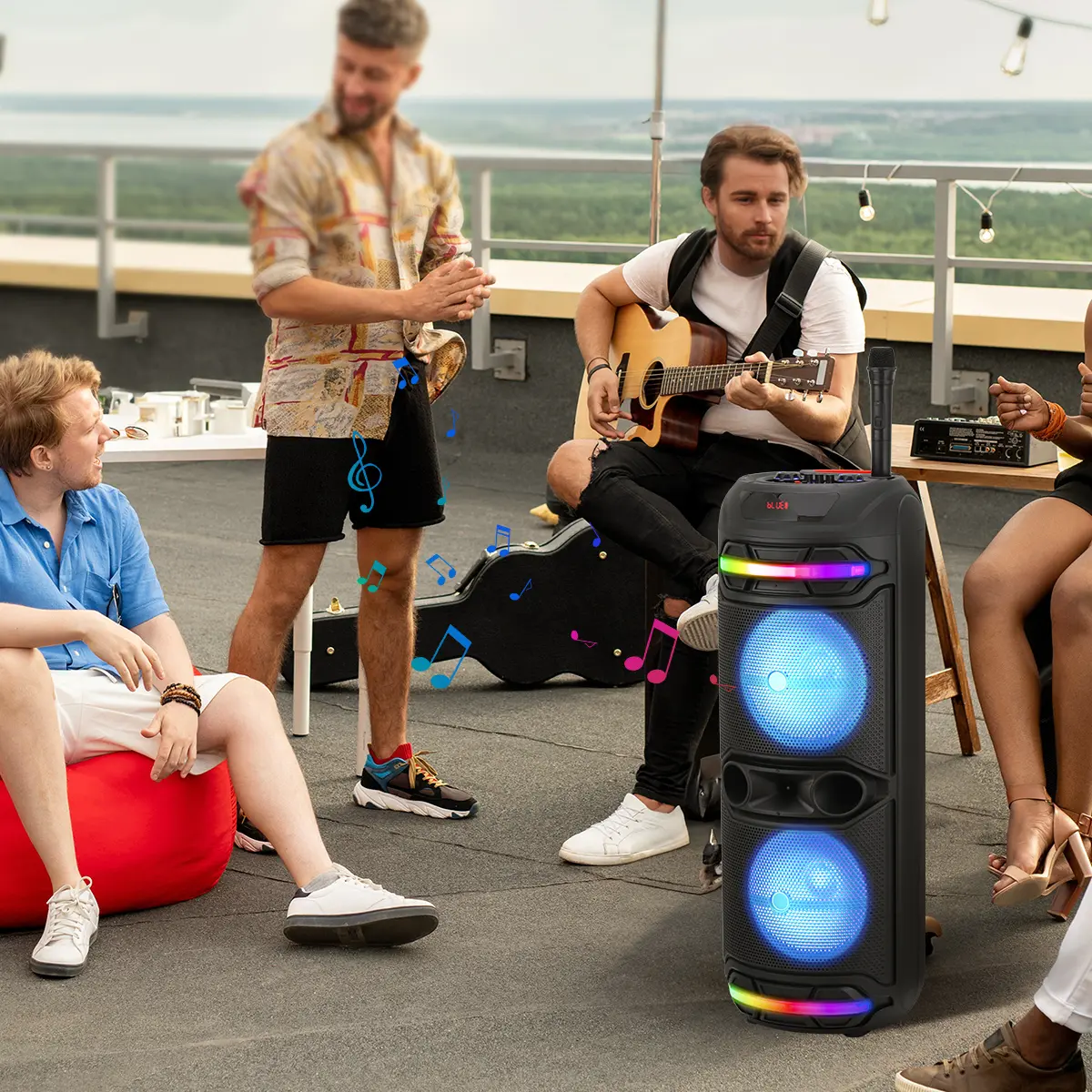 Multi-Input Options: Bluetooth, USB, Micro SD, FM radio, and AUX for versatile playback LED Party Lights