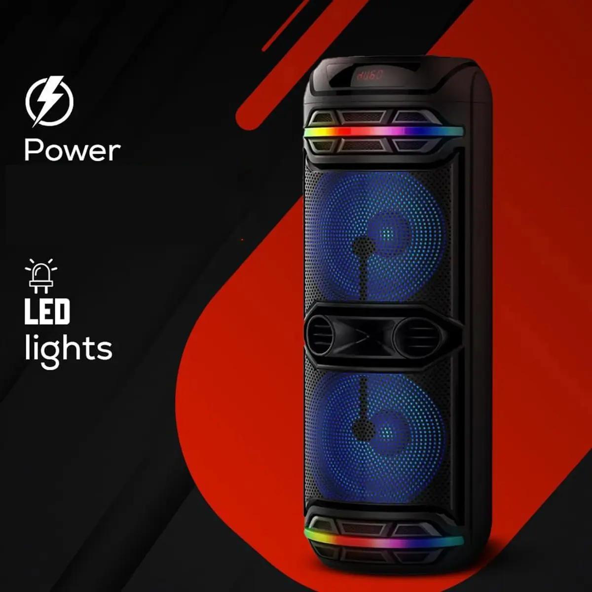 The Dual 12” Bluetooth Party Speaker is designed to bring powerful, room-filling audio with deep bass and crystal-clear highs at an affordable price. Featuring dual 12” woofers, and sound-activated LED party lights, this speaker turns any gathering into a party.