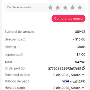 Hola yo page por dos VW rosas y solo me llegó uno page por ellos $47.98 quiero saber que está pasando