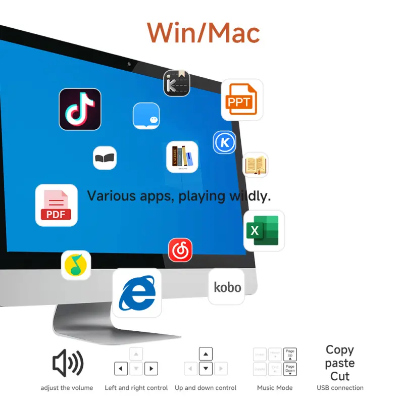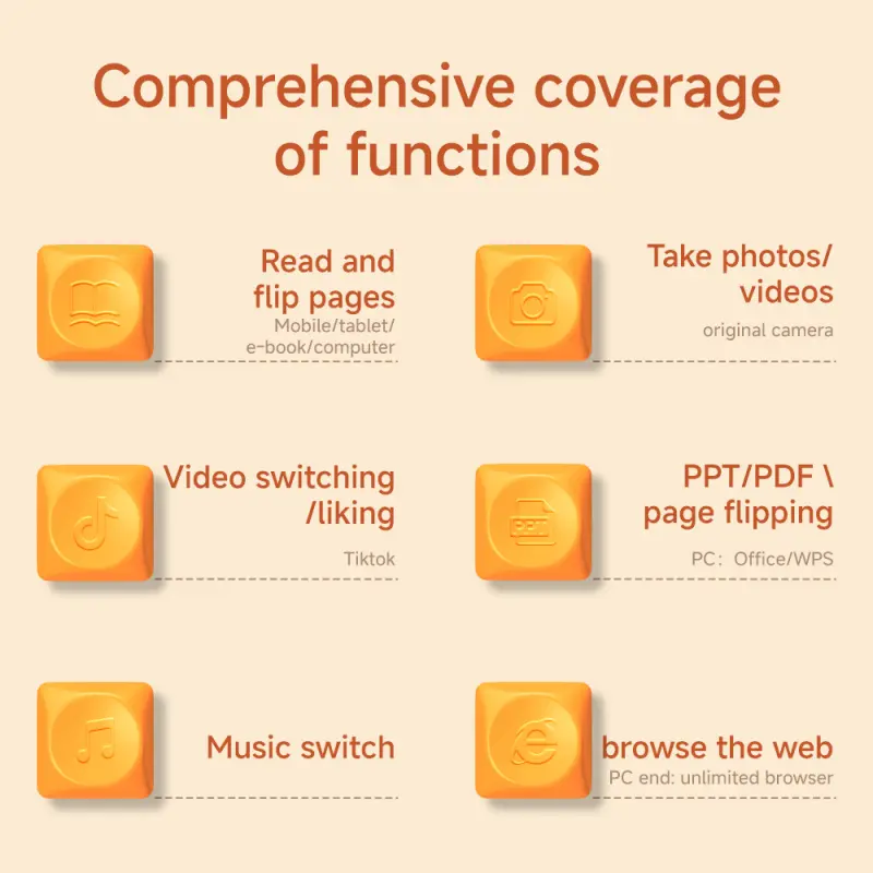 3-in-1 Bluetooth Remote Control for Reading, Gaming, Office, Wireless Game Controllers, Compatible with E-Readers, Phones, Tablets, Computers, Page Turning, Video Switching, Volume Control, Hot Swappable Shaft, Bluetooth 5.4, 30min Auto Sleep