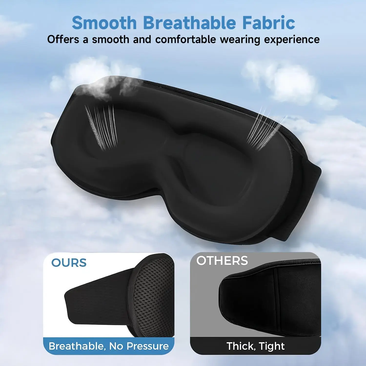 【Upgraded 3D Contour Design & No Eye Pressure】Our sleep mask with bluetooth headphones based on ergonomics.Our eyes can move freely with the 3D contoured bluetooth sleep mask. With no pressure on eyes, the bluetooth eye mask can bring you a comfortable and long-lasting sleep.The bluetooth sleep eye mask is the perfect Sleeping Headphones for side sleepers, choose sleeping bluetooth headphones, fall asleep fast, stay asleep and have a sweet dream